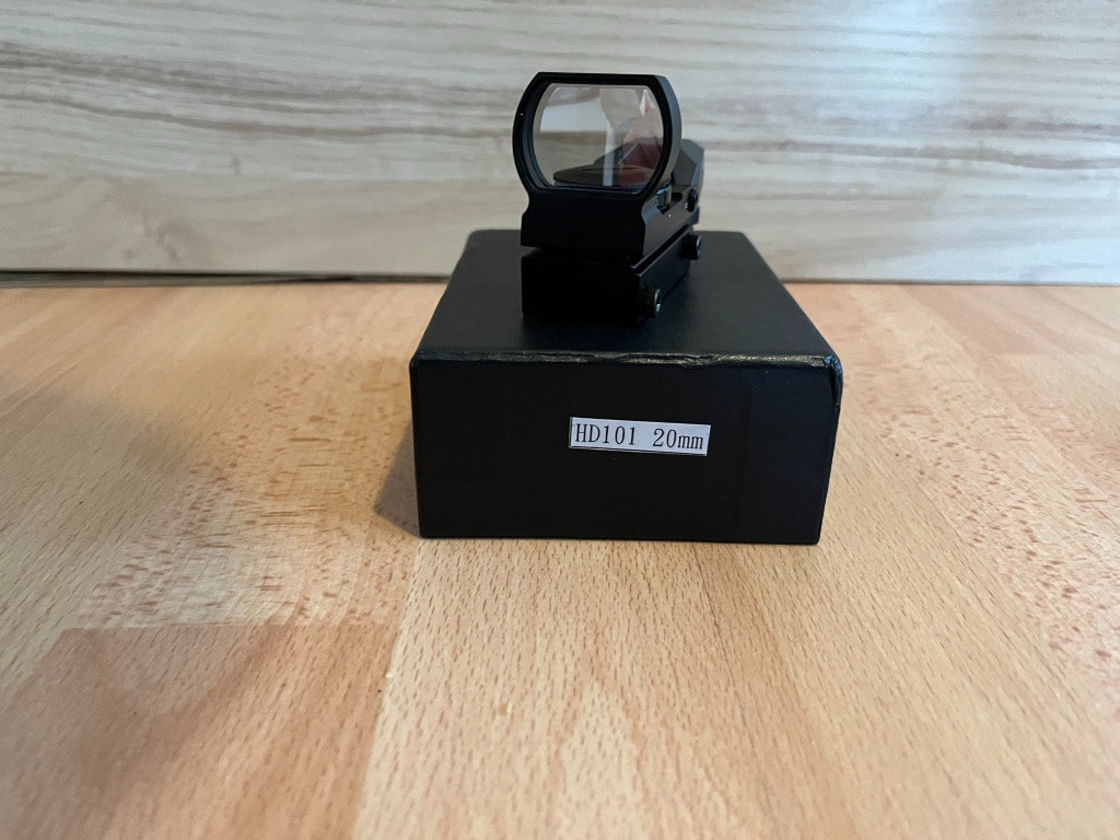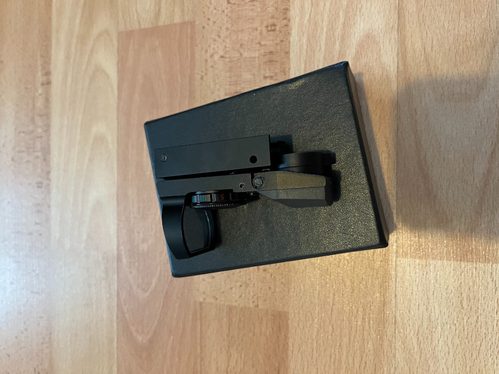 Prodám plně funkční a téměř nepoužitý průhledový kolimátor. Dvě barvy, dva záměrné body (tečka nebo kříž), pět stupňů jasu pro každou barvu. CENA 500Kč