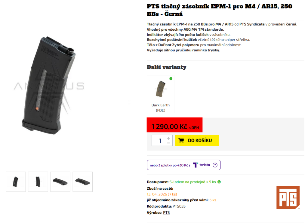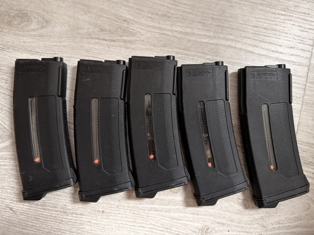 Ahoj, prodám 5ks PTS EPM s kapacitou 250BBs. Zásobníky číslo 1 a 2 by určitě nepohrdly výměnou pružiny (jedna opravná sada sada 400kč), nicméně stále vytlačí ca. 200 kuliček na 35rps. Cena je za všechny kusy. Předání: Liberec, Zásilkovna, Kandahár