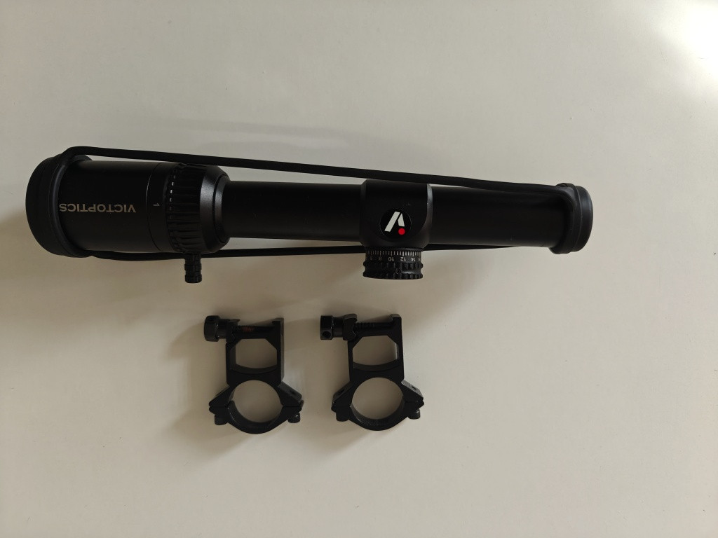Prodám VictOptics LPVO puškohled ZOD 1-4x20 SFP - Černá s killflashem a montážními kroužky Stav 9/10