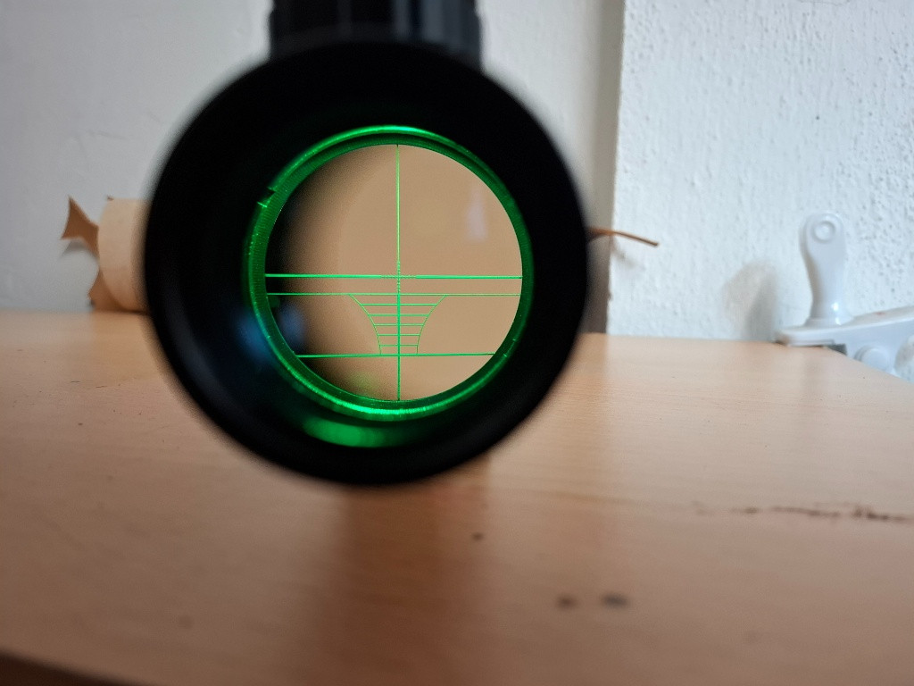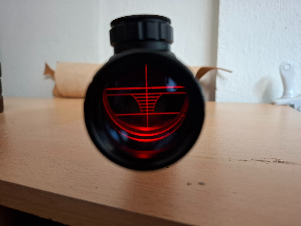 Stav nového, funkční, záměrný kříž není pokřiven. Podsvícení je také funkční ve všech stupních svítivosti. Posílám Zásilkovnou +90 korun