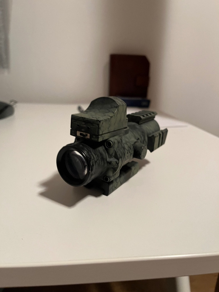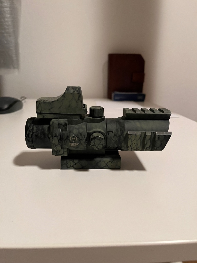 Prodám puškohled od firmy Theta Optics. Puškohledu ani kolimátoru nic není, prodávám z důvodu nevyužití. Nástřik jsem dělal sám, komu by nevyhovoval, dá se jednoduše odstranit technickým benzinem. Mohu zaslat v originálním obalu. Pro více info pište na email či SMS, na telefony nereaguji Při rychlém jednání sleva Původní cena 2350 Kč, zde pro ověření odkaz: https://airsoftpro.cz/cz/doplnky-ke-zbranim- popruhy/kolimatory-puskohledy/kolimatory/otevrene- kolimatory/optika-s-kolimatorem-rhino-4x32-detail