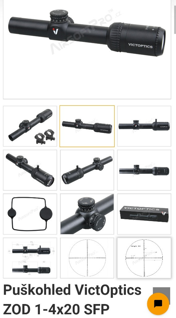 Prodám VictOptics LPVO puškohled ZOD 1-4x20 SFP - Černá s killflashem a montážními kroužky Stav 9/10