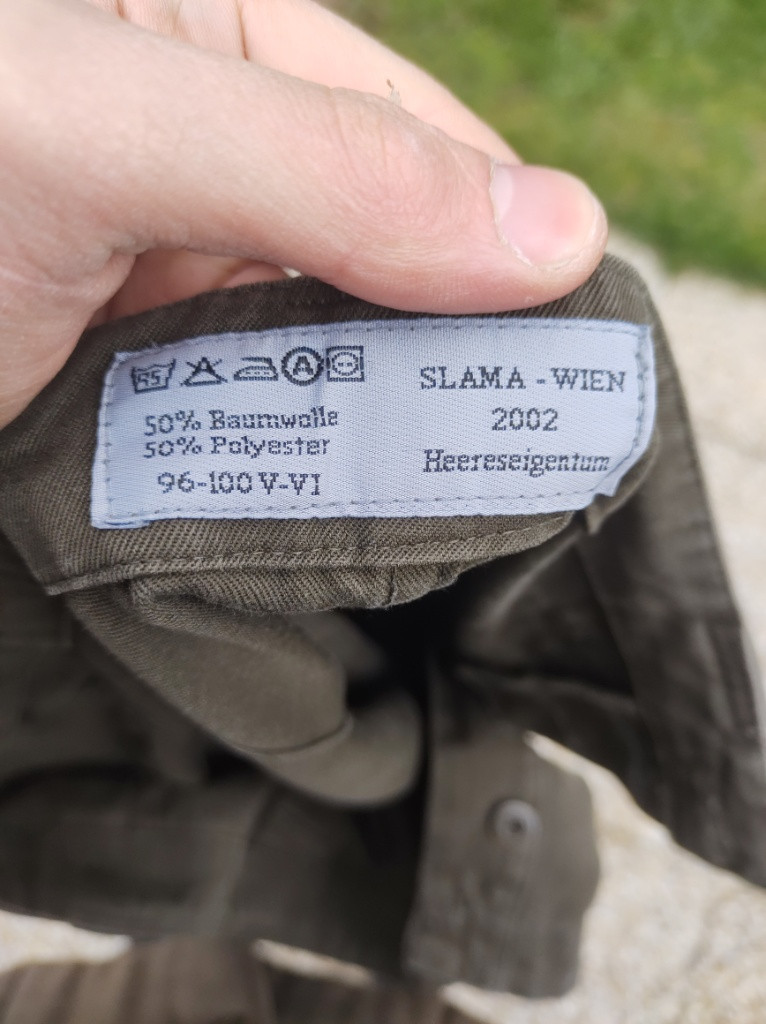 Prodám použité kalhoty rakouské armády kaz03. Má utrhlé dva knoflíky. Velikost viz foto