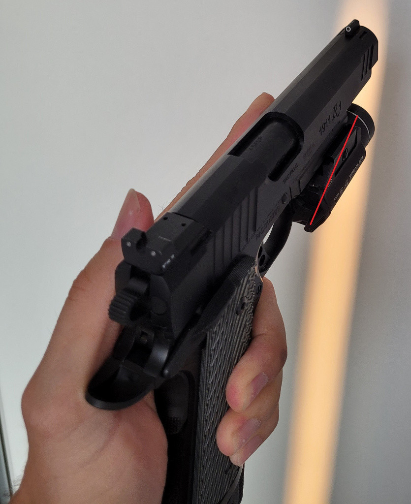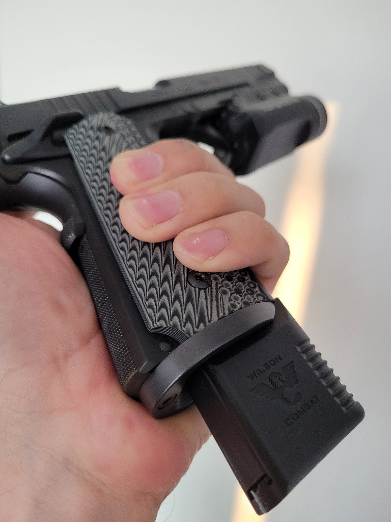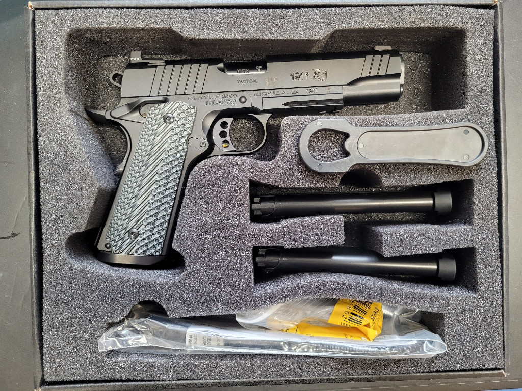 Ráže: .45 ACP Zbraň je prakticky nová - nastříleno 300 ran. Leží mi v trezoru nevyužitá. Zbraň osazena tritiovými mířidly. Drážky pro natahování v přední části závěru, lišta pro montáž stívilny, oboustranná pojistka a dlouhý trn vratné pružiny. G10 střenky. Nový kryt hlavní pružiny + rozšíření šachty. Originální main-spring housing v balení. 2x originální zásobník na 8 ran + 3x zásobník Wilson Combat na 10 ran. Osobní prohlídka není problém. Další foto mohu na vyžádání poslat.