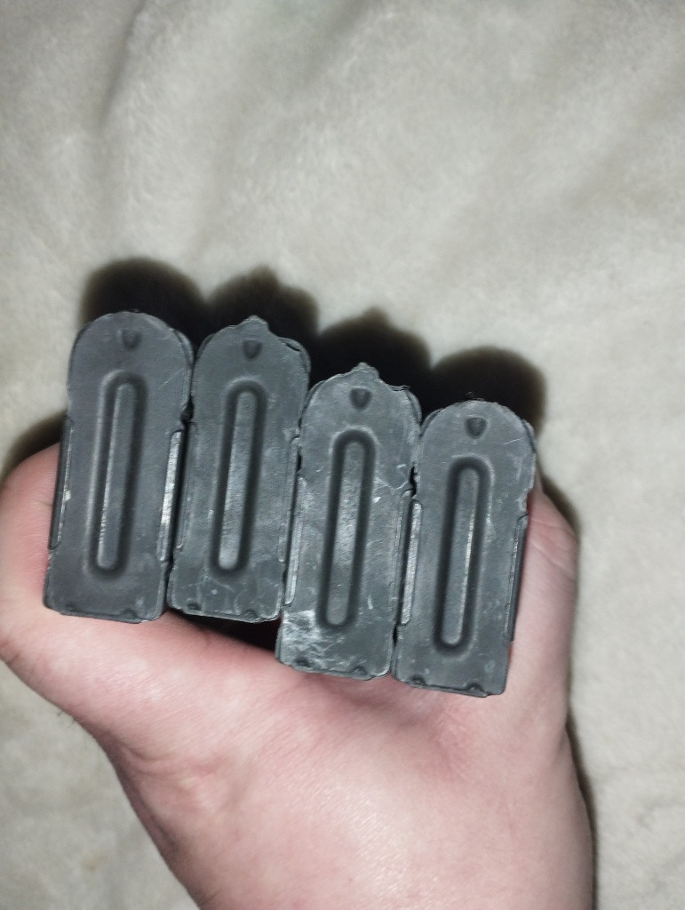 4 ks zásobníků M1 Karabinu. Materiál: pryskyřice Skvělé položky pro reenactory Cena za kůs 30 kč + poštovné