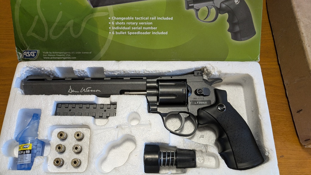 Nabízím airsoftový co2 Revolver Dan Wesson. Je v pěkném stavu. Kompletní balení. Pořizovací cena byla 2700.