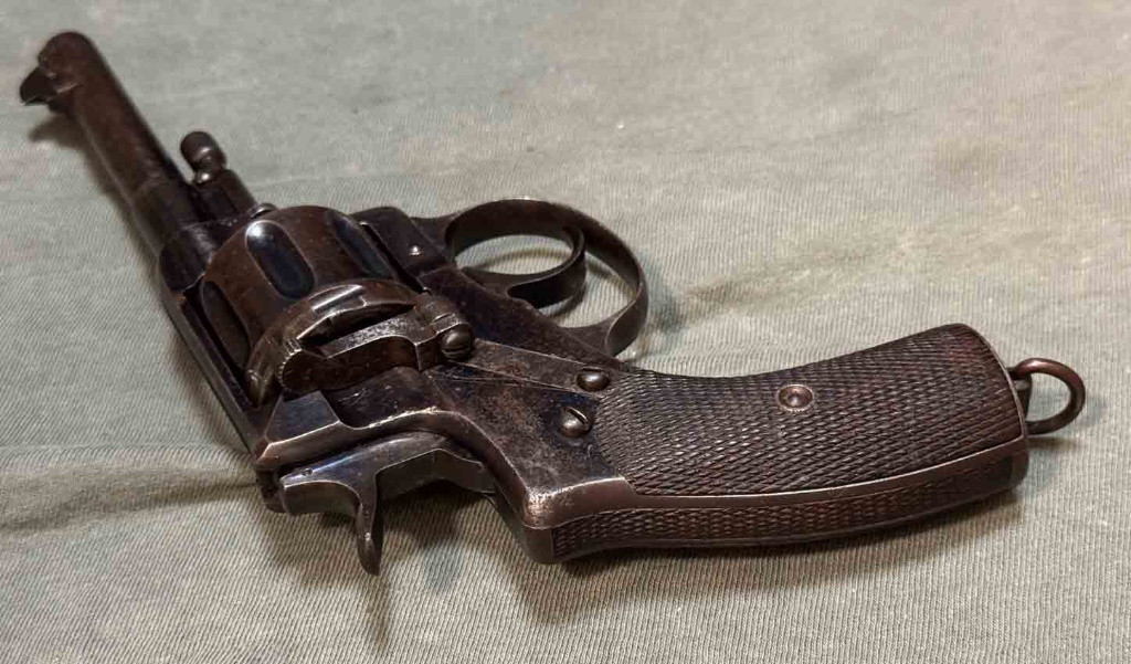 První z prvních slavných tzv. ruských Nagantů M95 vyrobených ještě v Belgii před výrobou v Rusku. Revolver je sčíslovaný, původní brynýr se zbytky hlubokého modření, bez pozdějších úprav (žádná skládačka), hlaveň je lesklá s ostrými drážkami. Revolver má platnou původní tormentaci! Povrch má patinu, u hlavně tečky koroze od uložení v pouzdře. Moc se jich nedochovalo a dnes se téměř neobjevují. ZP a NP podmínkou.