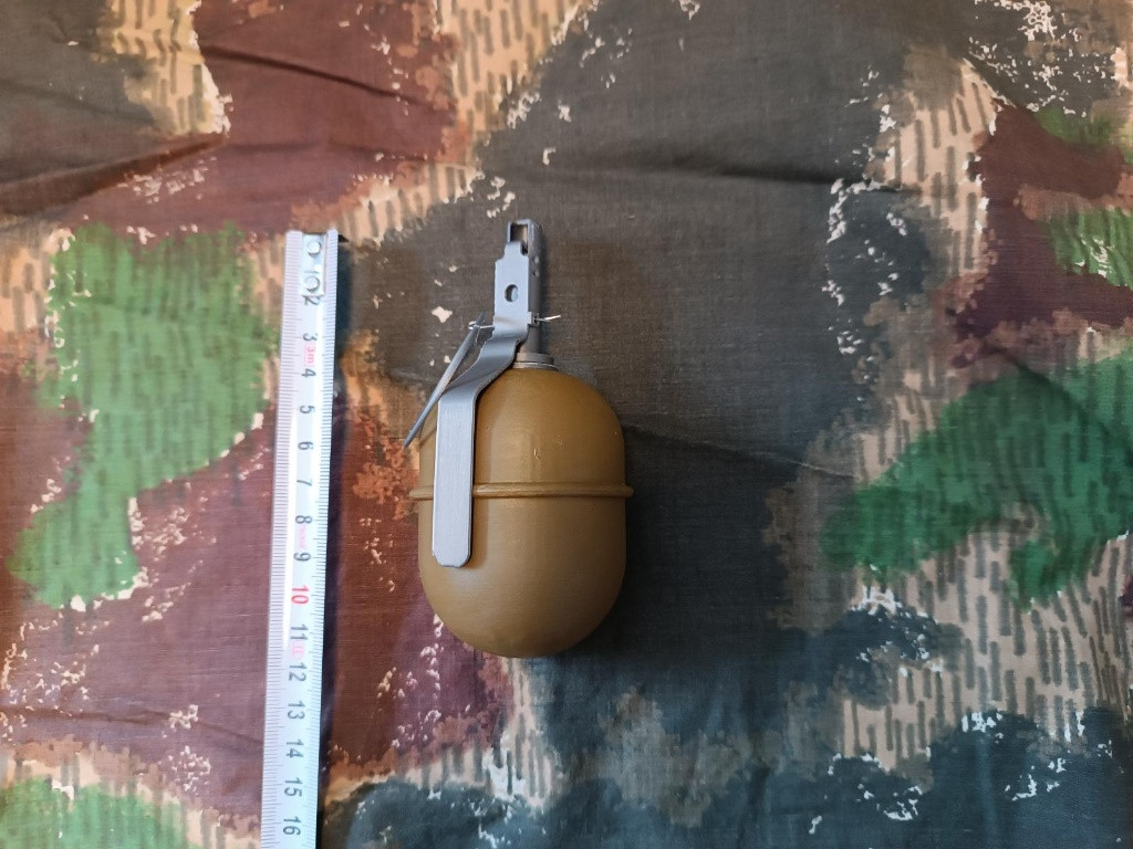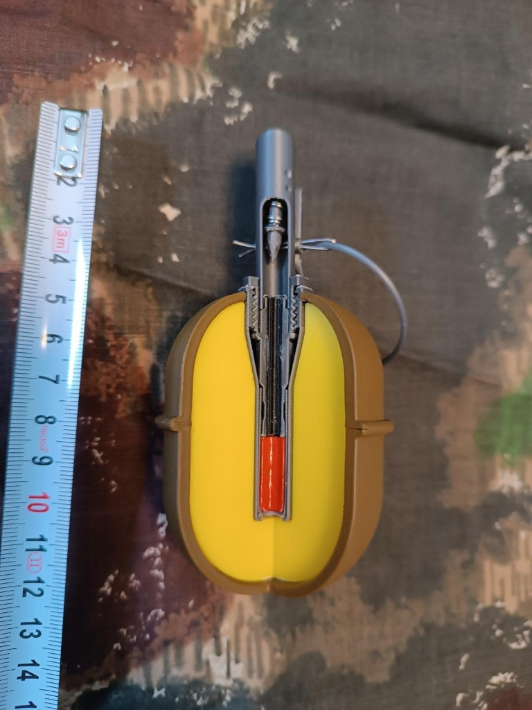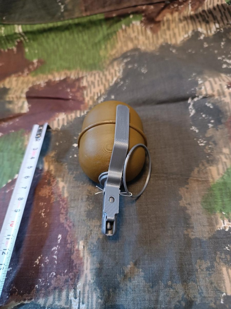 RGD-5 (Ručnaja granata distancionnaja – „ruční granát s časovou roznětkou“) je sovětský tříštivý protipěchotní granát vyvinutý na počátku 50. let 3D tištěná maketa s ručně dobroušenými a lakovanými vybranými detaily pro autentický vzhled v provedení řezu. Měřítko - 1:1 Materiál - 100% PLA plast - neobsahuje žádné výbušné či jinak nebezpečné části. Zaslání možné balíkovna, zásilkovna za 89kč ( případná dobírka + 29kč ) popř osobní předání Brno nebo dle domluvy. Kontakt prosím na email tel smyšlený