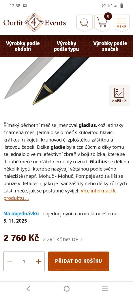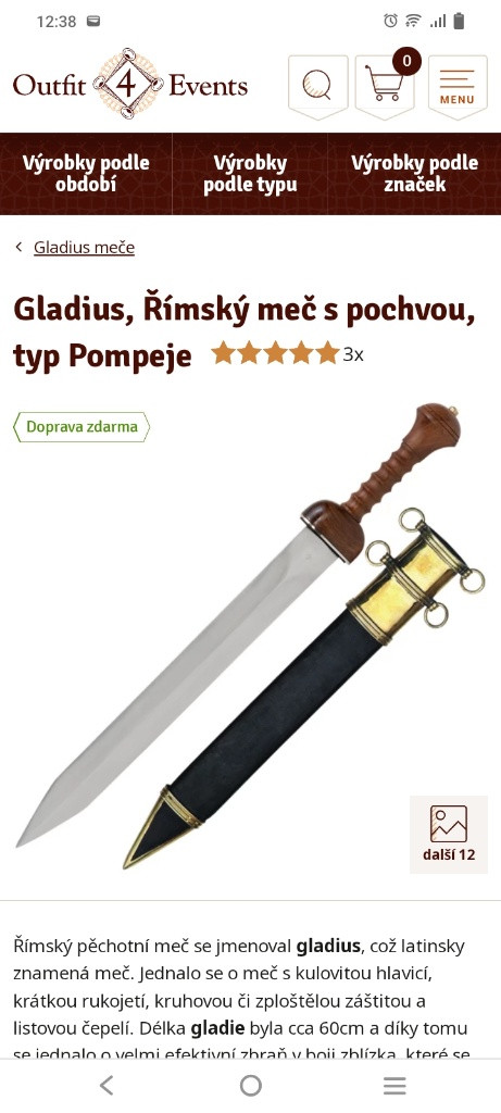 Prodám Římský meč Gladius bez známek použití čepel čistá bez škrábanců