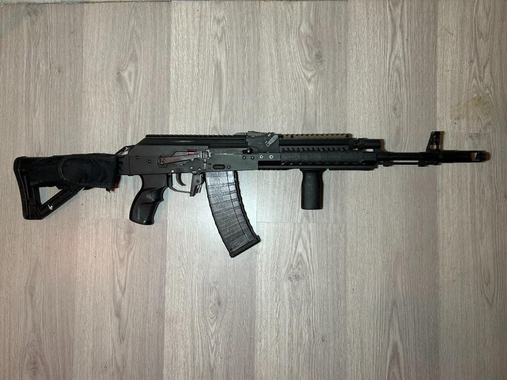 Prodám RK 74T od G&G, ve zbrani je kompletně vyměněný mechabox (CNC od Shooter s rychlou výměnou pružiny) včetně vnitřních dílů (E.T.U. je původní, kola zátěžová 100:300 SHS), PDI hlaveň 6,01 nerez, hop-up je původní (gumička od Maple-Leaf). Výkon je konzistentní 2,39 J na 0,36g Na konstrukci zbraně je úprava krytky závěru - vyvrtaná díra v zadní části kvůli kabeláže k baterii, která je v pouzdře umístěna na pažbě (původně je v předpažbí, ale prostor je tam malý) Ke zbrani přidám 5x zásobník originál od G&G (tlačné na 115 ran) ZBRAŇ NENÍ KOMPATIBILNÍ S JINÝMI ZÁSOBNÍKY (https://airsoftpro.cz/cz/? option=com_virtuemart&view=productdetails&virtuemart_ca tegory_id=1053&virtuemart_product_id=4876&Itemid=133) V ideálním případě osobní předání v okolí Brna/Slavkova u Brna