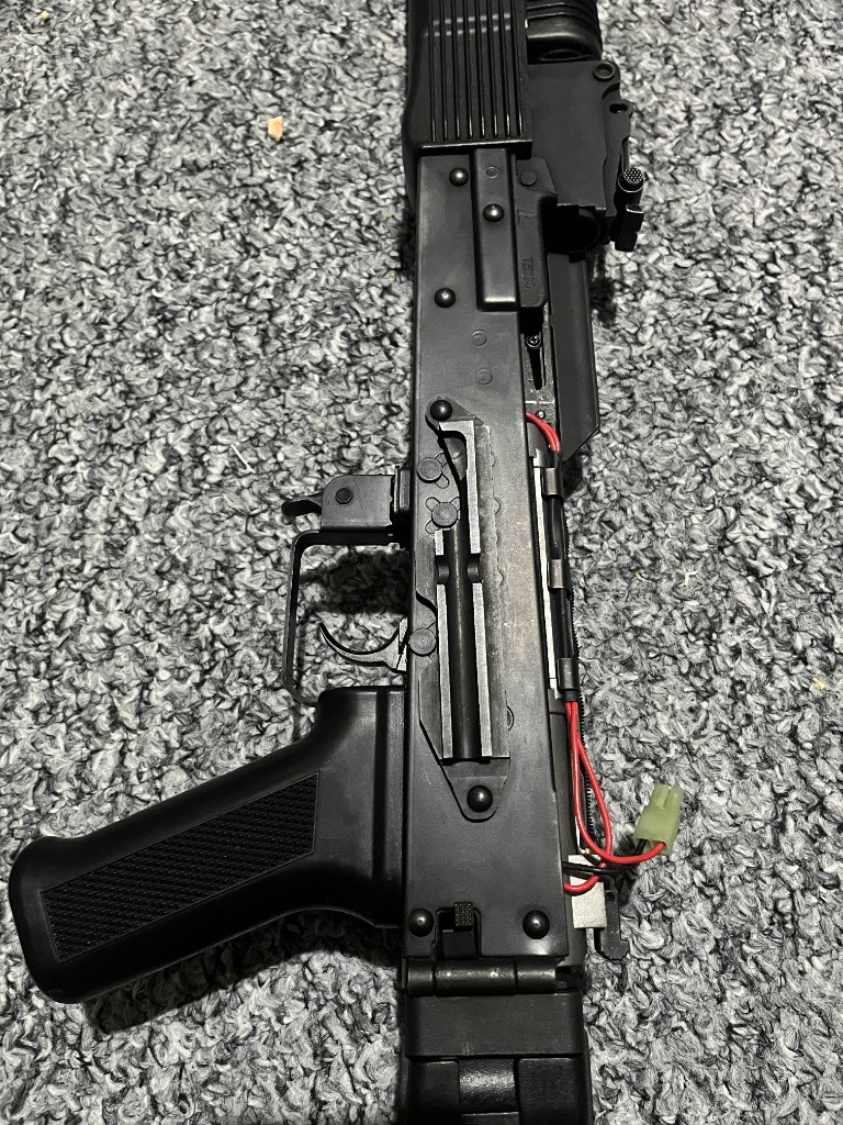 Prodám svoje RPK(se sklopnou pažbou) s příslušenstvím- 6x zásobník, popruh, baterka, krabice od zbraně, a jsem schopný ke zbrani přihodit dva pytle kuliček (0,25g). Bylo měněné mířidlo protože upadlo tohle už sedí, a chybí vytěrák pod hlavní. Není tam procesorová jednotka ani mosfet ale normální kabeláž nebylo nic měněno kromě mířidla, žádná koroze. Preferuji osobní odběr a při rychlém jednání možná sleva. Důvod prodeje- mám vyhlídnutou jinou zbraň