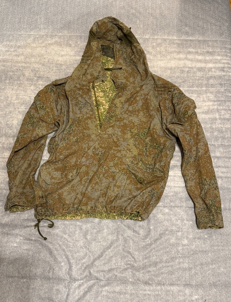 Prodám originální ruský ratnik převlečník. Je oboustranný a dá se převrátit naruby pro jinou kamufláž - jarní a podzimní. velikost 50-52/4