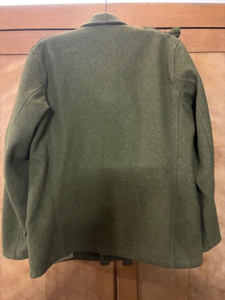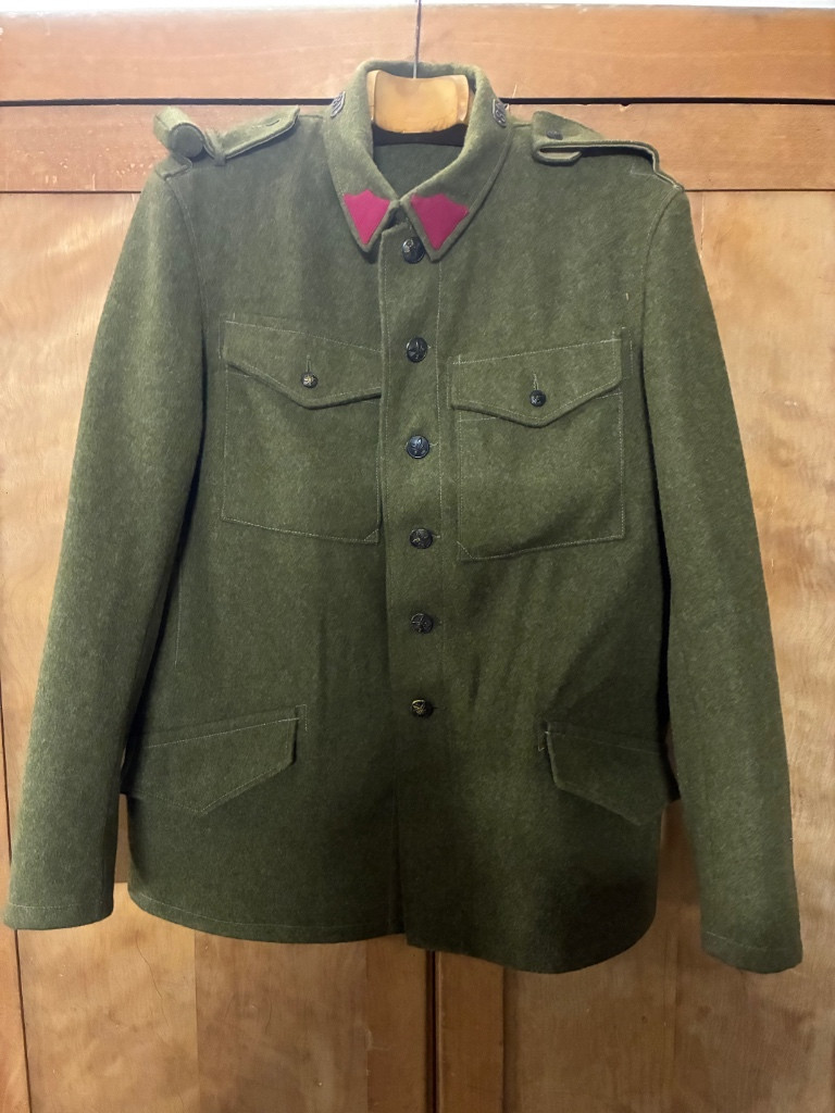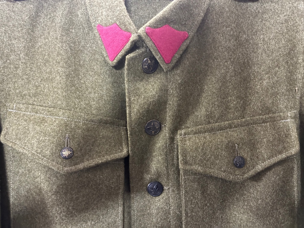 Prodám vlněnou blůzu / sako vz.30. Jedná se o repliku, šitá před několika lety, ale stále jako nová. Velikost je na výšku 180-185cm, šířka hrudi 118cm, délka od límce 76cm a délka rukávu od ramene 66cm. Trochu ošoupané knoflíky. K blůze přidám plukovní čísla “2” (na fotce jsou “31”, které nebudou součástí), mohu přidat cyklistické odznaky na výložky a rukávocou nášivku v případě zájmu. Váleček na nárameník mohu také přidat v případě zájmu. Dopravu preferuji zasilkovnou a platbu předem.