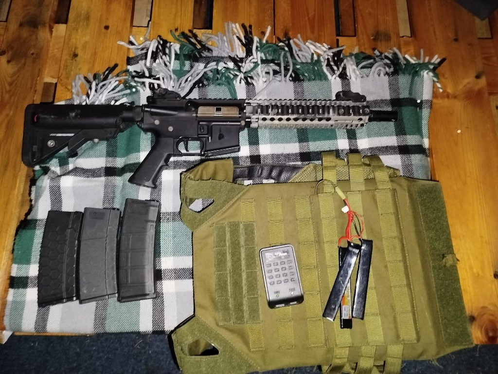 Prodám Specnu MK18 elektrická, původní cena zbraně 8,499. Prodávám z důvodu že budu kupovat jinou (plynovku), chci aby si ji ještě někdo užil. 2 roky stará zbran kupoval jsem ji novou v action shopu a hrál jsem s ní na pěti akcích, hraju radši plynovky. Dám k tomu i vestu s plátama jak můžete vidět na fotce, 3 tlačáky, nabíječku na Li-po/Li-fe baterie a Li-pol baterku(11,1V, 1400 mAh). Všechno dohromady je za uvedenou cenu, můžu celý set poslat přes zásilkovnu.