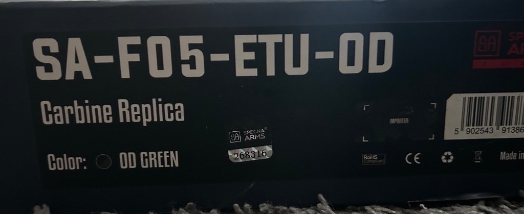 Nabízím k prodeji airsoftovou zbraň značky Specna Arms, model SA-F05-ETU-OD v barvě OD Green. Jedná se o kvalitní repliku se systémem ETU (Electronic Trigger Unit), který zajišťuje lepší odezvu spouště a chrání vnitřní součásti zbraně. Zbraň je ve výborném stavu, jako nová. Vhodná pro začátečníky i pokročilé hráče. Specifikace: • Výrobce: Specna Arms • Model: SA-F05-ETU-OD • Barva: OD Green • Typ: elektrická airsoftová karabina (AEG) • ETU/MOSFET jednotka Obsah balení: 3 x zásobníky 1x Nahraní pružina 2 x baterie ( 1000 + 1300 mAh 11v) 1x kolimátor + balení 2x ochranné sklíčko + balení 1x čistič hlavně 1x programovací karta Cena: 6500 (při rychlém jednáni sleva ) Lokalita: Olomouc Možnost osobního předání nebo zaslání poštou po domluvě. V případě zájmu mě kontaktujte přes gmail nebo telefonicky.