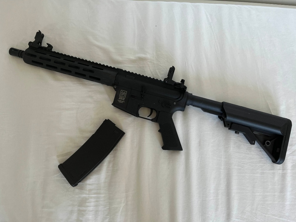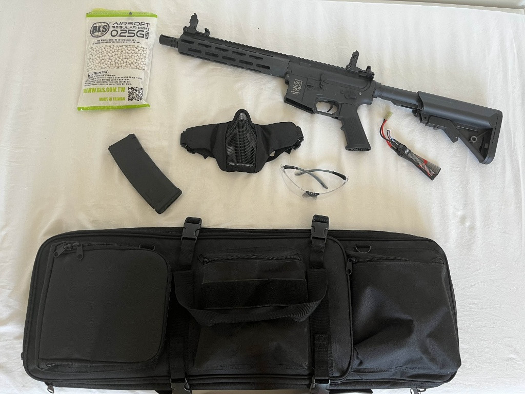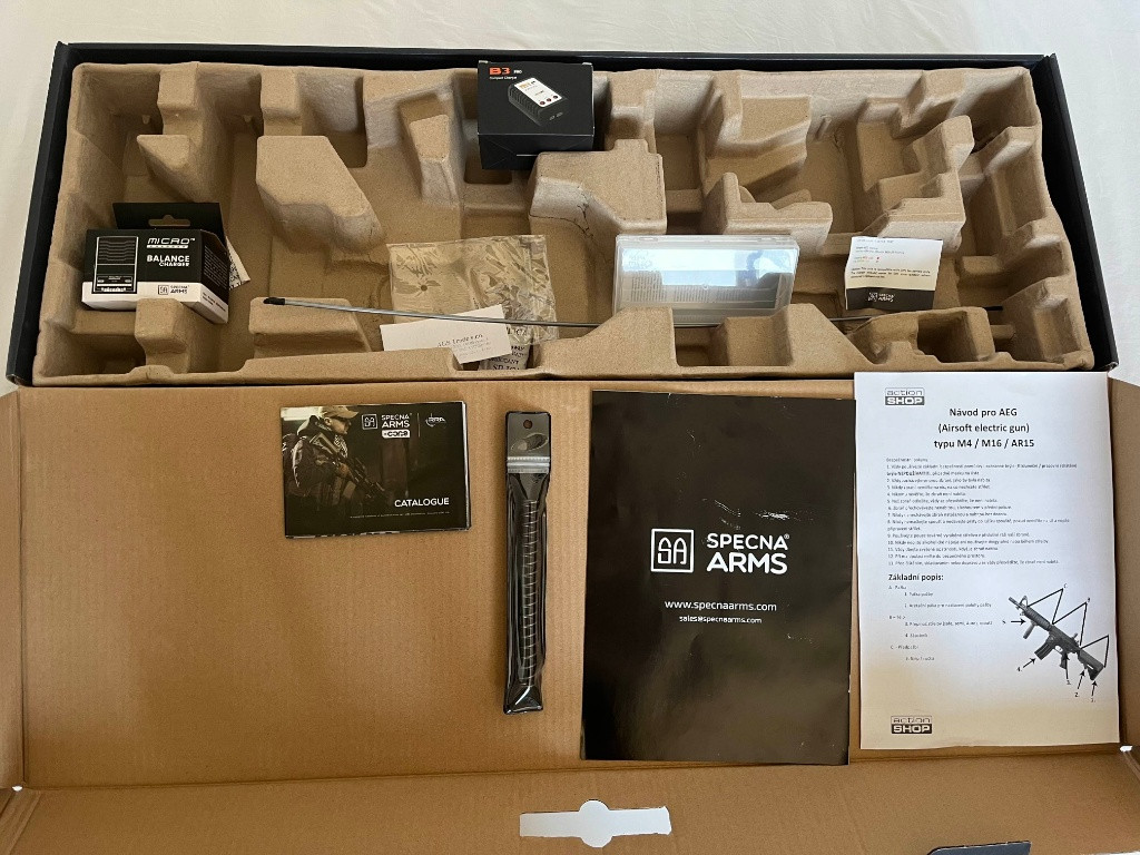 Jedná se o prodej komplet začatečnické výzbroje na Airsoft vše bylo použito pouze na jedný akci. Co obsahuje balíček. (všechno co je na fotkách) -SA FLEX SA-F03, M-lok - Černá [Specna Arms] -Balanční Micro processor pro nabíjení Li-Po baterií -BB BLS 0,25g skoro1kg [BLS] -Pouzdro na zbraň 80/110cm, černá [GFC] -zásobník -maska Lze koupit jako komplet pouze.