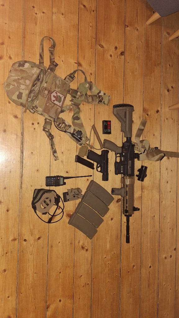 Zdravím, prodám Specna Arms HK416 H-22 Edge 2.0 : Přepodložkováno, Nová hlava -ASparts, Válec RA 5500 Kč AAP01-C- Vystříleno cca 500 kulí 1400 Kč otevřený holster na AAP-01C/ Glock 200 Kč Vysílačka Baofeng- Nepoužita, včetně PTT a Bowmana 800 Kč Nabíječka TITAN 700 Kč Maskáče G3 Emersongear XXL 1000 Kč UBACS Emersongear XXL 500 Kč Chestrig VIPER 1000 Kč