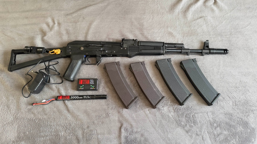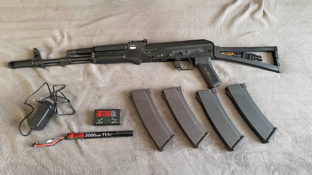 Prodám Specna Arms Ak74s ve verzi edge 2.0 s originální procesorovou jednotkou (bez zásahu do mechaboxu) s veškerými vybavením na fotce, zásobníky jsou originál Specna Arms krásně ve zbrani sedí a výborně podávají kuličky. Baterie Titan 11,1V 3000mAh v plné kondici i s nabíječkou Titan digital. Představa o ceně 5500,- plus náklady na dopravu PS: v případě zájmu není problém video ze střelby