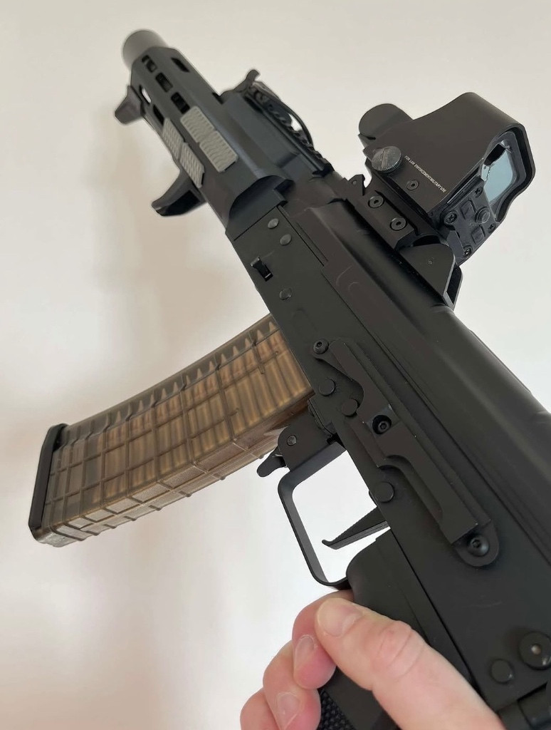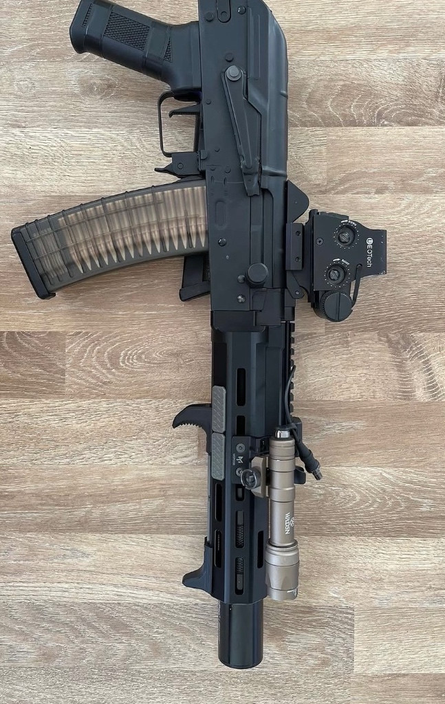 Zdravím, prodám zde AKS-74U od Specna Arms, je vybavená HAL ETU Gen.2 programovatelnou procesorovou jednotkou, zbraň je v základu velmi slušná, dobrá citlivost spoustě (na 20% nastavená), hezká kadence na full auto, ke zbrani 2x točné zásobníky a 3 tlačné zásobníky, RIS lišta na kolimátor, 3D tištěné m-lok předpažbí, origo předpažbí, origo kompenzátor, tlumič co je na obrázku a další doplňky nejsou ke zbrani !!! Posílám přes PPL a platí se předem !!!!!