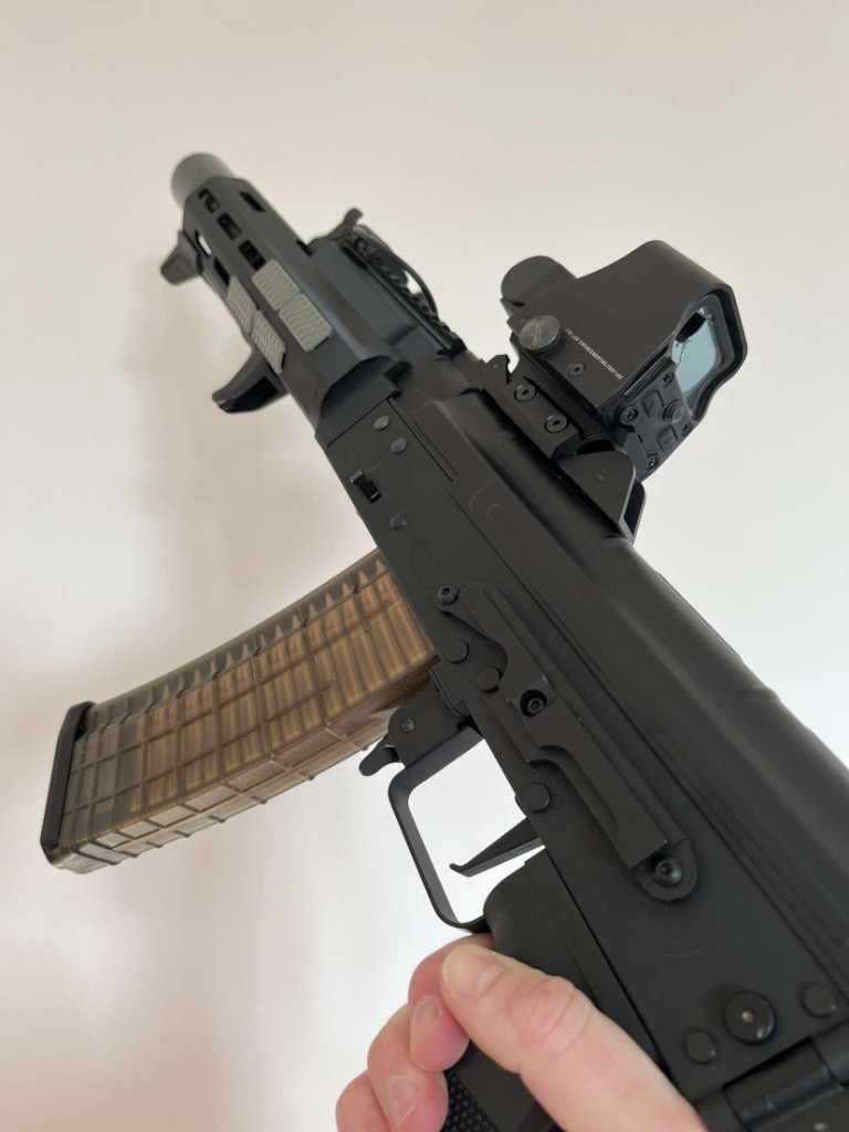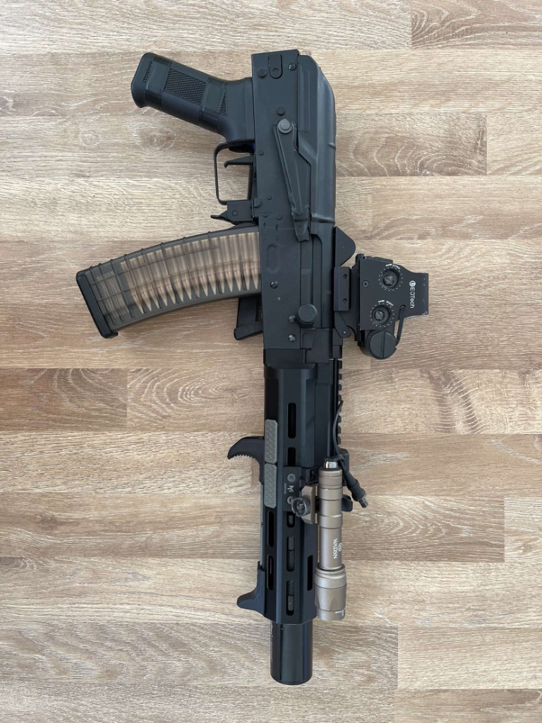 Zdravím, prodám zde AKS-74U od Specna Arms, je vybavená HAL ETU Gen.2 programovatelnou procesorovou jednotkou, zbraň je v základu velmi slušná, dobrá citlivost spoustě (na 20% nastavená), hezká kadence na full auto, ke zbrani 2x točné zásobníky a 3 tlačné zásobníky, RIS lišta na kolimátor, 3D tištěné m-lok předpažbí, origo předpažbí, origo kompenzátor, li-po baterie a inteligentní nabíječka, tlumič co je na obrázku a další doplňky nejsou ke zbrani !!! Posílám přes PPL poštovné ZDARMA ALE platí se předem !!!!!
