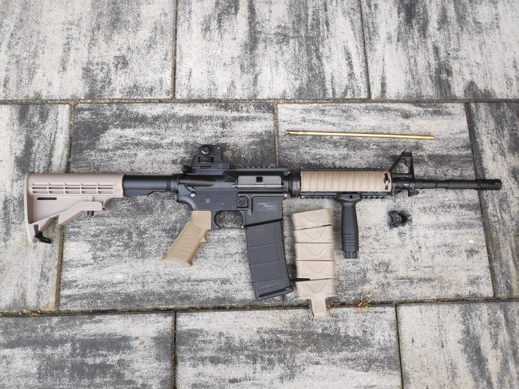 Ahoj, mám na prodej skládanou Specna arms M4 zaměřenou na výdrž a cqb hřiště. Tělo celokovov edge s možností rychlé výměny pružiny bez nutnosti vytahovat mechabox z těla!, mechabox Orion s QSC, hop komora základ plastová, motor SA Advanced 30k M120-140. Hlaveň 35 a 29 cm SRC 6.03 mm. Vnější hlaveň je dvoudílná. Mechabox je opatřen kónusy proti prasknutí. Uvnitř mechu jsou základní díly až na píst a hlavu pístu, kov SHS. Dál jsem jsem upravil píst a kolo pístu zkrácením o tři zuby, tím pádem se brutálně snížilo namáhání komplet všech dílů i výkon pro CQB. Je tam momentálně M100 od ICS, výkon s 11.1V baterií 25C, kuličky 0.28 g je 94 m/s s 1.15 J v průměru a RPS je 17. Test s M120 je 103.5 m/s 1.5 J a 15 RPS. Takže pro výkon 1.3J je ideální pružina M110 do maximálně povolených limitů CQB. Ke zbrani je jeden tlačný zásobník na 120BB, vertikální rukojeť, krátká hlaveň 29 cm, 5x gumové oko na zásobník a montáž pro boční uchycení oka popruhu. Možnost osobního předání a vyzkoušení ve Vyškově jinak zásilkovna. Prodávám bez baterie.