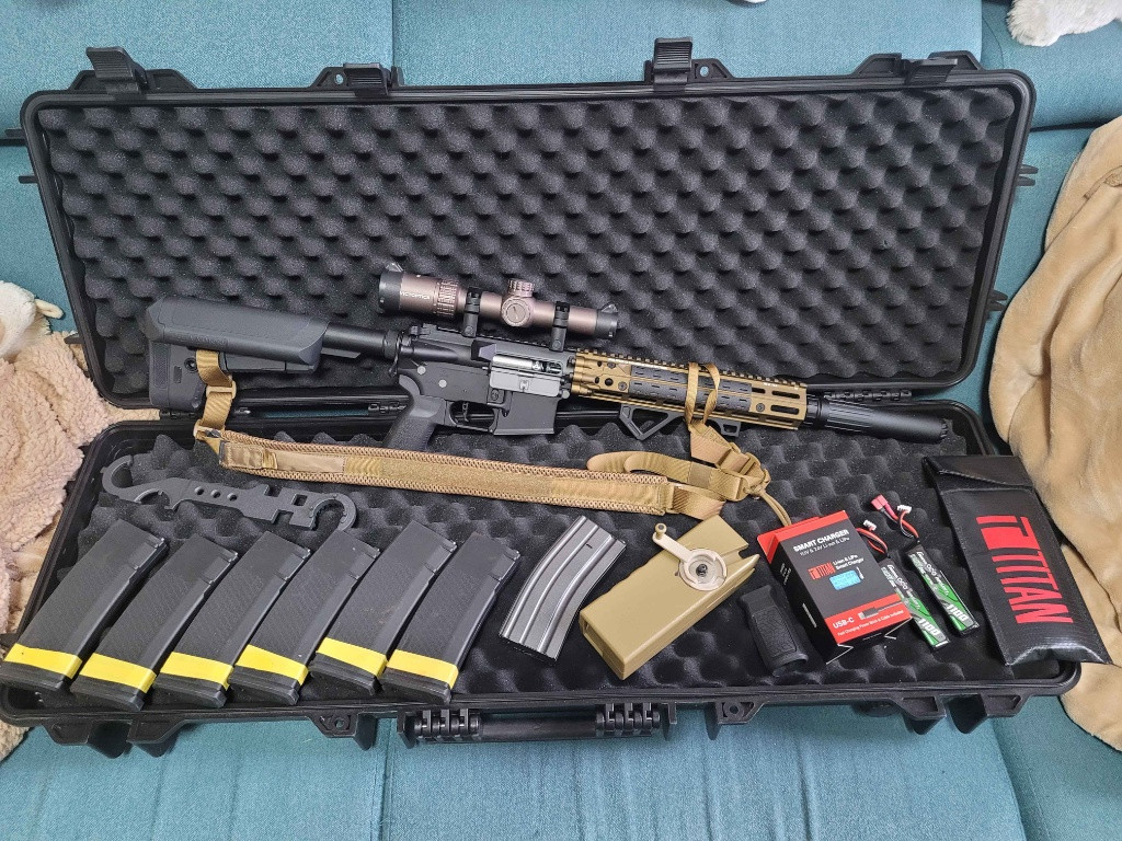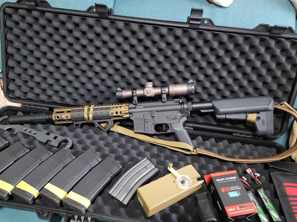 Nabízím k prodeji mou Primu, verze s bez-uhlíkovým motorem a jednotkou ASTER 2. Vyměněna gumička za ML a na hlaveň dodány epesní o-kroužky pro lepší dosednutí komory na mechabox. Na .32 davá 1,7J. Zbraň osazena tlumičem Action army s custom výplní, LPVO od Victoptics a popruhem od Helikonu . Dále ke zbrani přidám 7 zásobníků, AR klíč, PTS Odin rychloplničku, dvě baterky s vakem a TITAN nabíječku. V případě zájmu mohu přidat i kufr. Zbraň je v hezkém stavu hraná pouze párkrát. Rozumné dohodě se nebráním. Preferuji osobní převzetí Olomouc a okolí.