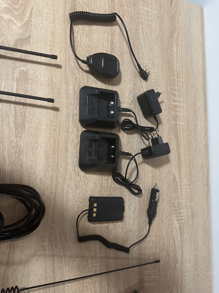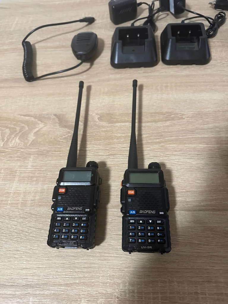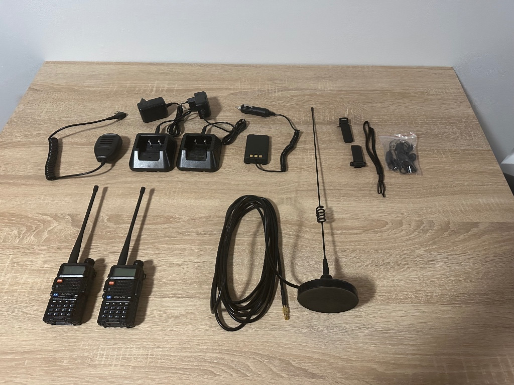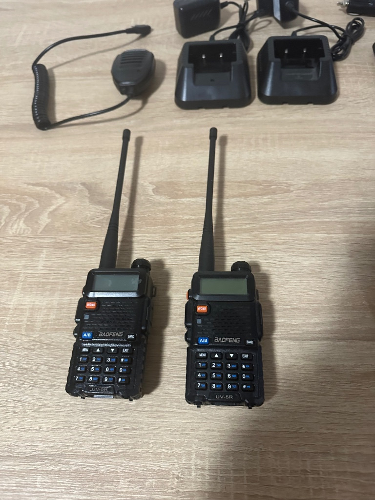 Prodám 2 vysílačky beofang uv5r, dále jsou v sade 2 klasické nabíječky ze sítě, 1 nabíječka z auta, klipy a šňůrky, 1 reproduktor s mikrofonem a magnetická velká anténa na střechu auta s konektorem