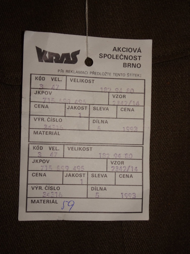 | Kalhoty jehličí VZ 60 - skladovka vel. 2B | Kalhoty | 26. 03. 2025 17:54 |