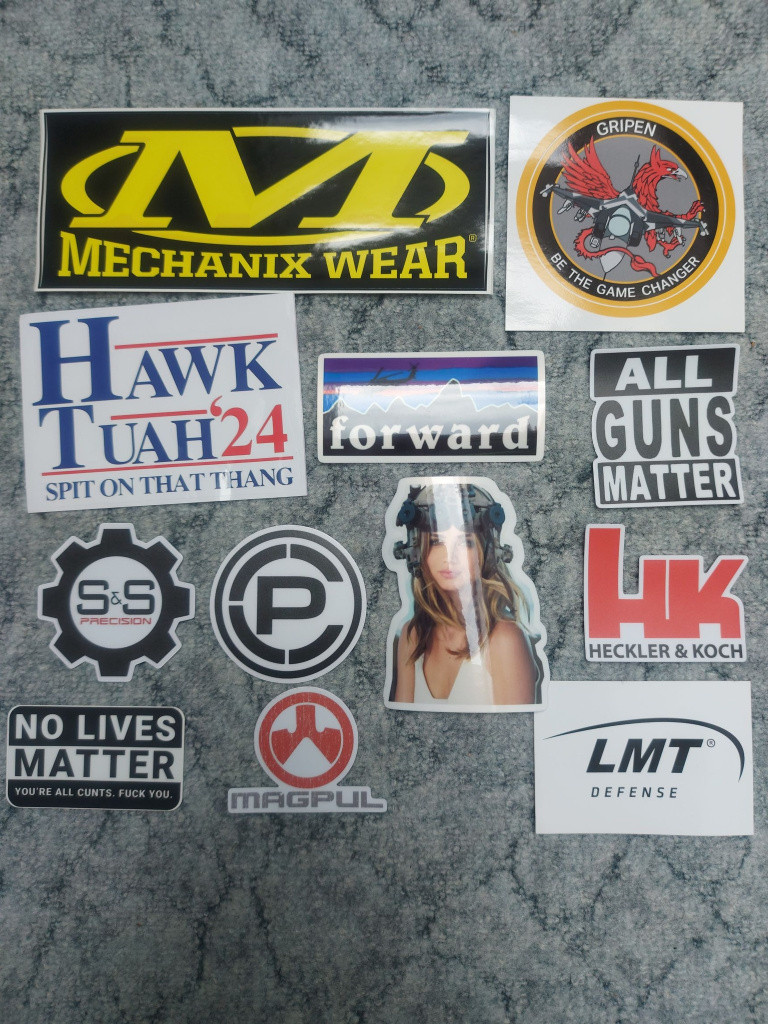 samolepky (K dispozici i více kusů. V TOMTO POPISKU U FOTKY JSOU AKTUÁLNÍ INFORMACE OHLEDNĚ DOSTUPNOSTI.): - MECHANIX WEAR VELKÁ (pár ks) - LMT DEFENSE (pár ks) - CRYE PRECISION (pár ks) - PELICAN (pár ks) - S&S Precision (pár ks) - LBT (pár ks) - NO LIVES MATTER (1x) - MAGPUL (na objednávku) - Tactical Ana velká (pár ks) - H&K (pár ks) - FORWARD (pár ks) - ALL GNS MATTER (pár ks) - GRIPEN (pár ks) - HAWK TUAH (pár ks) - Tactical Ana malá (pár ks) - EOTECH nová generace (na objednávku) - LBT (pár ks) - WALTHER (pár ks) - MECHANIX WEAR 30 YEARS (pár ks) - NIGHTFORCE (pár ks) - PELICAN (pár ks) - DANIEL DEFENSE (pár ks) - Aimpoint (pár ks) - EOTech stará generace (pár ks) - FIRST RULE IS TO HAVE FUN (pár ks) - BECOME UNGOVERNABLE (pár ks) - WILCOX (pár ks) - MYSTERY RANCH (pár ks) - SUREFIRE (pár ks) - MAGPUL černá (pár ks) - SEND IT (pár ks) - Pepe militia (pár ks) - KNIGHT'S ARMAMENT (pár ks) ================================== DALŠÍ FOTKY NA PŘÁNÍ, PLATÍ DO SMAZÁNÍ ================================== PROHLÉDNĚTE SI I MOJE DALŠÍ INZERÁTY! :) ================================== AKTUÁLNÍ INFO V ODKAZE NA VEŘEJNÉ ALBUM NA FACEBOOKU ================================== https://www.facebook.com/media/set/?set=a.2046721925408981&type=3