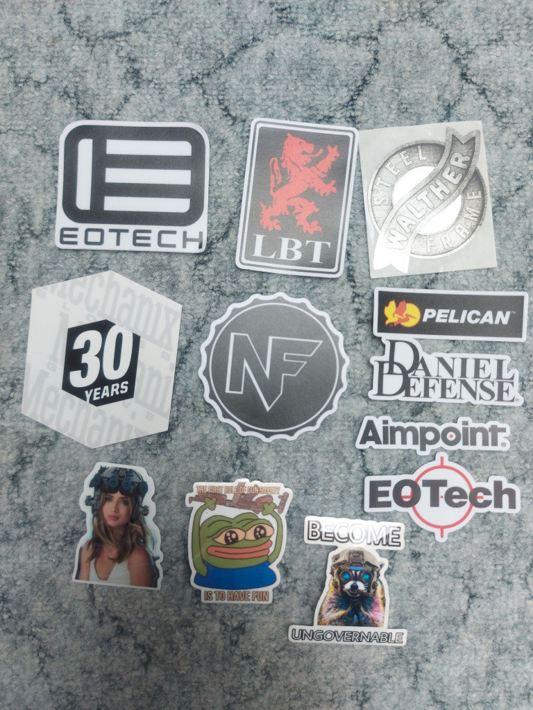 SAMOLEPKY STICKERS MECHANIX LBT EOTECH MONSTER ARMY STANAG DANIEL DEFENSE PELICAN LBT NIGHT FORCE UMAREX AIMPOINT FORWARD LMT CRYE