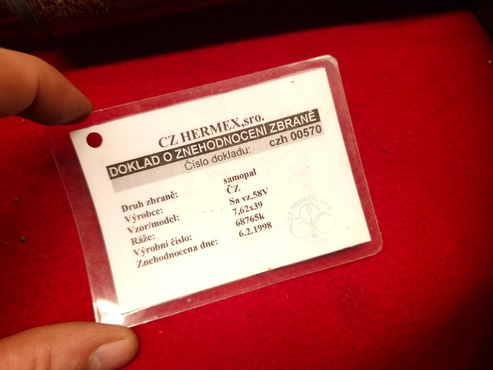 Popis:Samopal Sa 58 sklopka, Postaru znehodnocen 1998