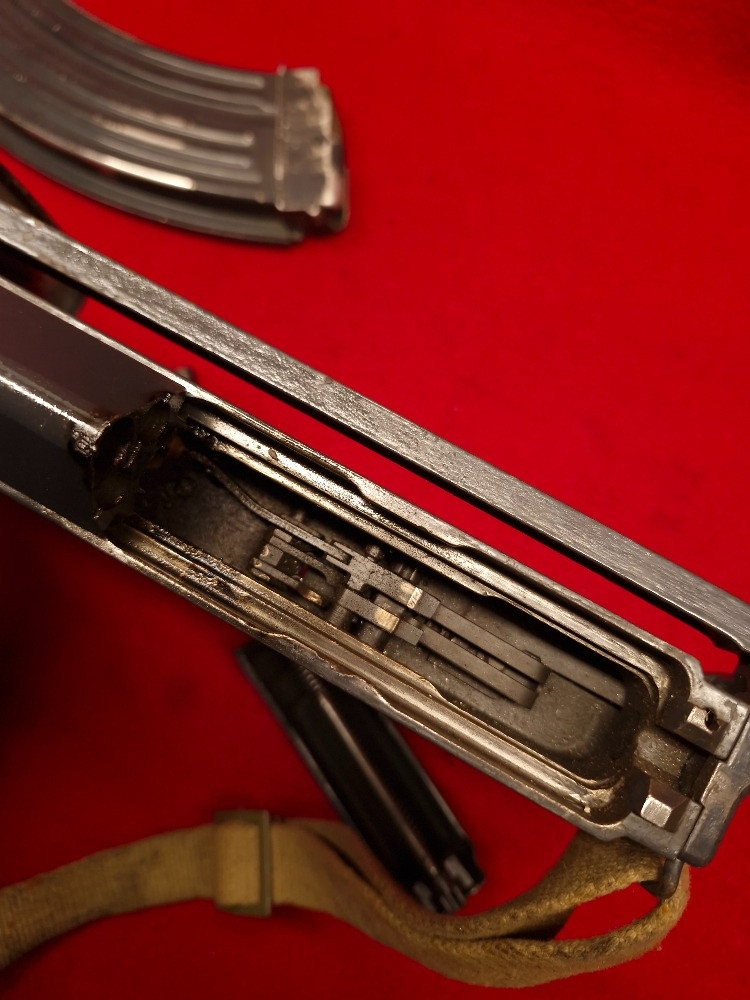 Velmi pekny stav viz. foto. Spoust a pojistka v pohybu, zadni celo zaveru se da sundat, zasobnikova sachta nezavarena atd...Celkove vse viz. foto. Malo sehanatelny stav. Chudim