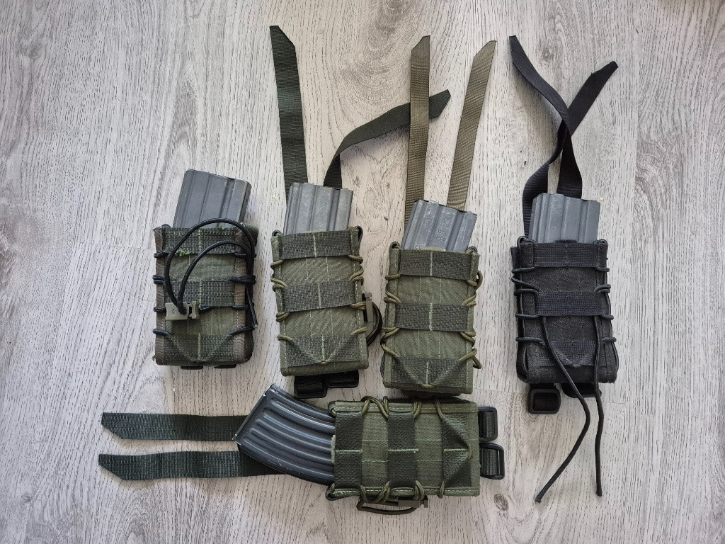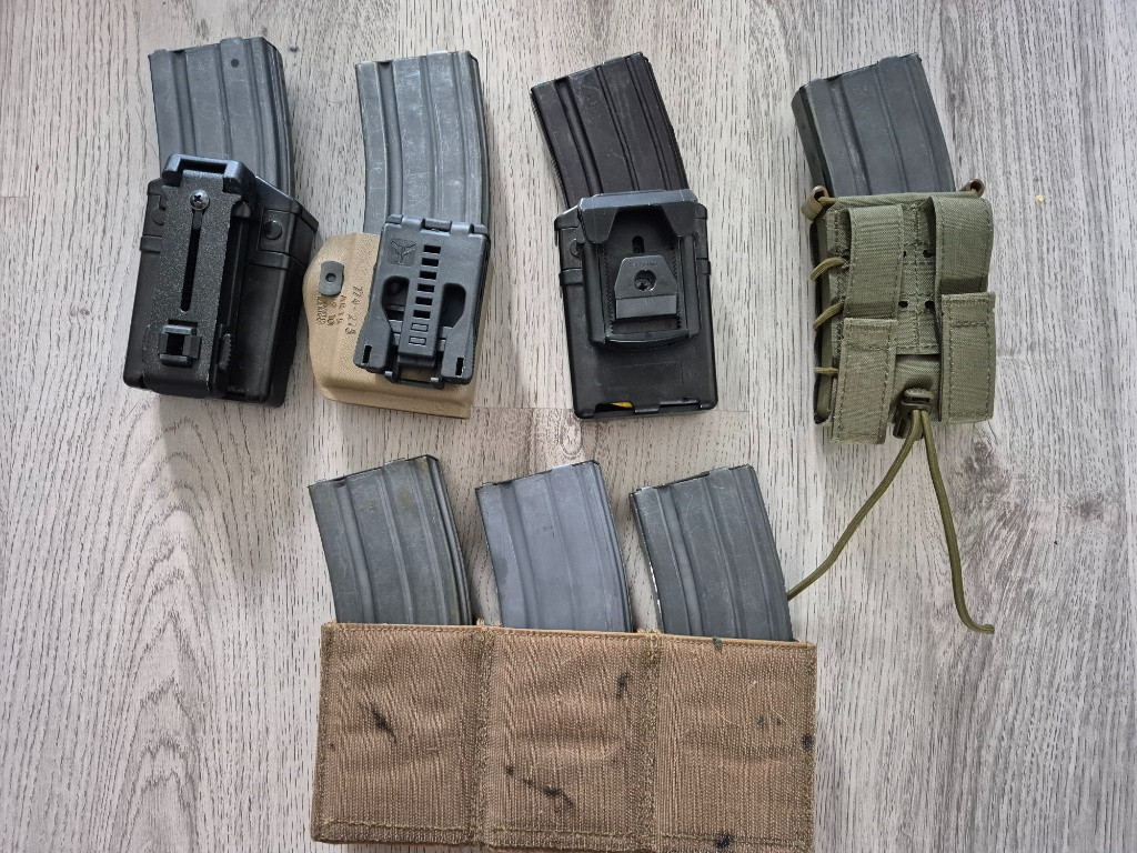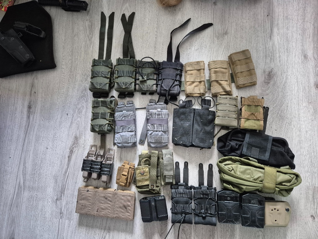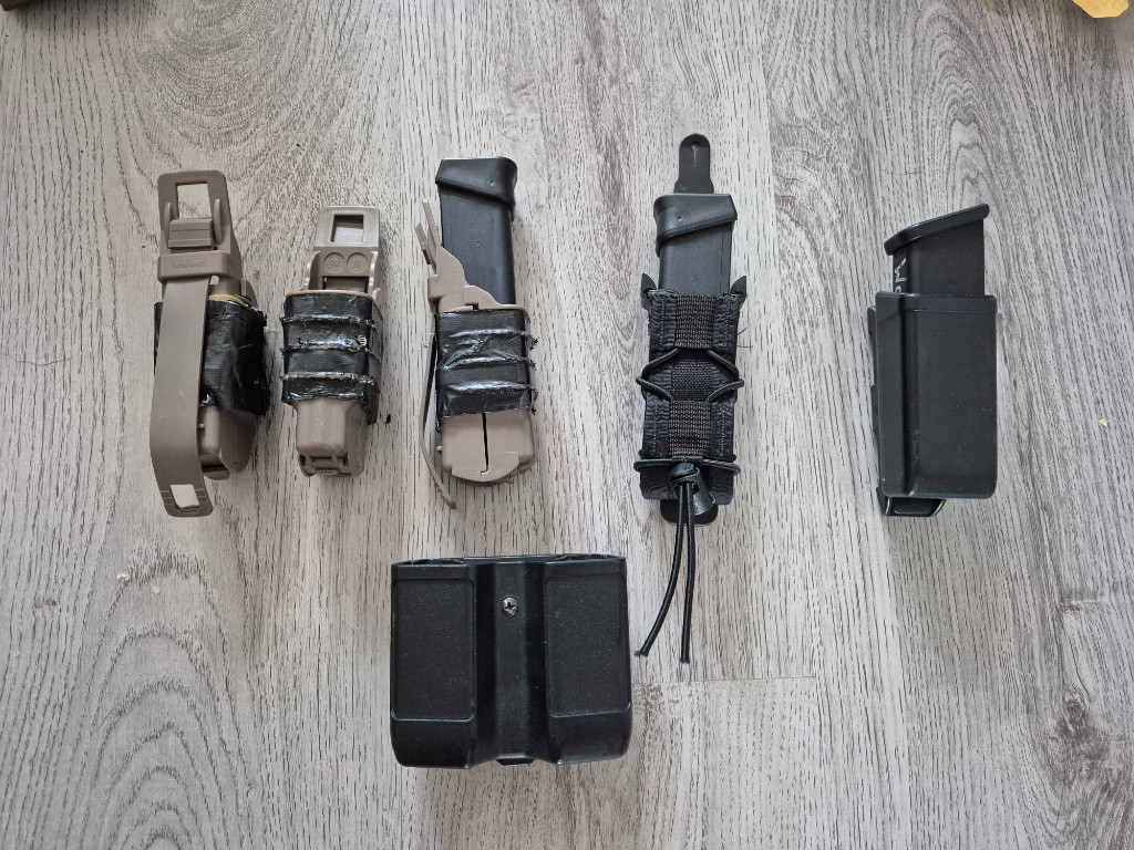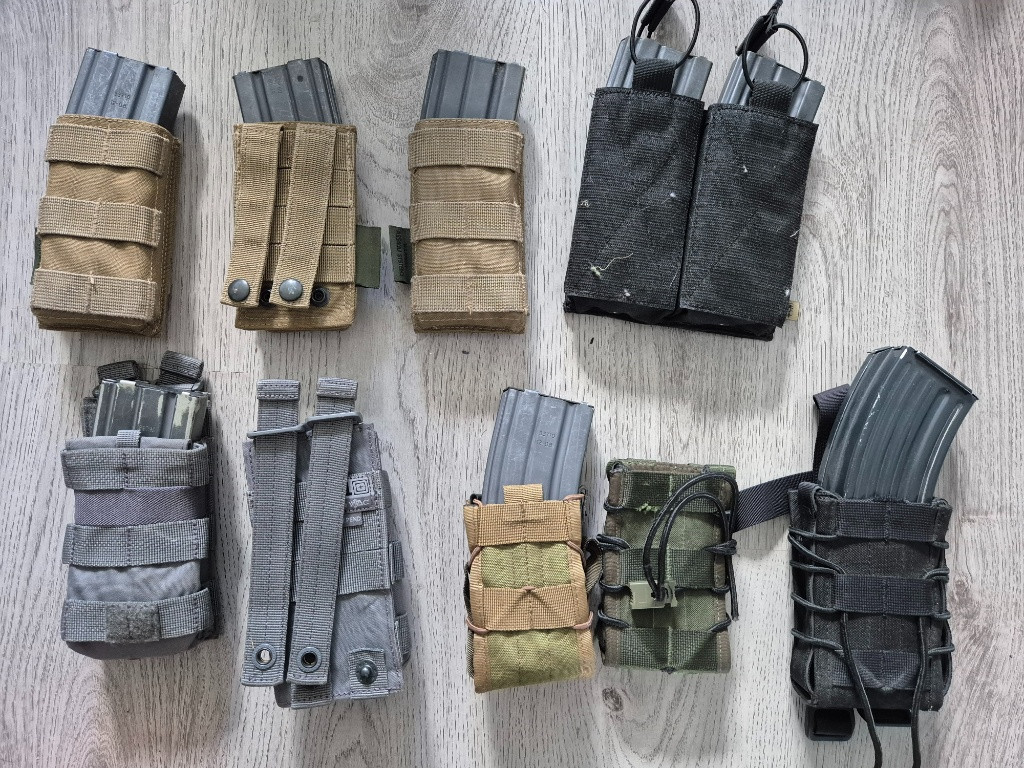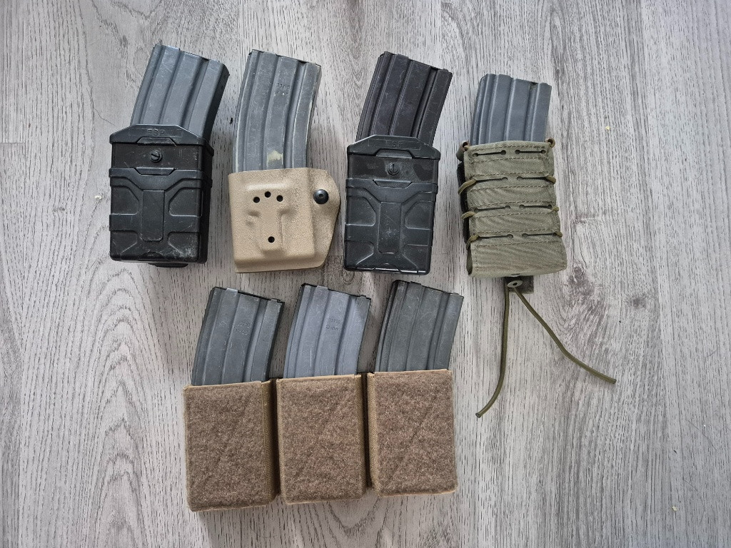 Všehochuť samosvorných sumek, puškové na zásobníky AR / SA58, G36, Bren 1 apod. Pistolové. Ceny na domluvě, dle množství ks. Plechové zásobníky AR rovněž k mání, dle aktuálního zákona. Asi 11ks, různí výrobci.