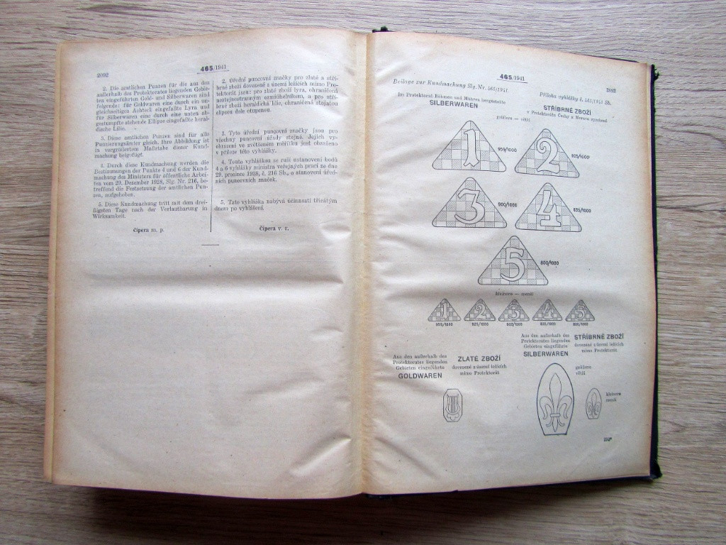 Sbírka zákonů a nařízení 1941, II. Sammlung se státním znakem, vydáno 9.5. 1941. Stav cca 8 z 10. Cena 900 Kč. Dále prodávám další staré knihy a časopisy: Letecká kniha československé mládeže 1937, stav cca 7/10, leták ČSA a mapa letecké světové dopravy. Cena 990 Kč. Masaryk ve fotografii 1931 kniha + obraz Masaryka, stav cca 7,5/10 a 5/10. Cena celkem 2500 Kč, prodej knihy i obrazu pouze dohromady. Mladý technik roč V (1951), čísla 1 až 51-52. Stav cca 6 z 10, tloušťka cca 4 cm. Cena 1100 Kč. Národopisná výstava českoslovanská v Praze 1895. Cena 3500 Kč. Road Atlas AAA 1994 USA, Canada, Mexico, 40x29x1 cm, stav cca 8/10. Cena 500 Kč. Rozlet 1946-47 – letecký pilotní časopis, ročník II, číslo 27(46) až 51(70) 1946 + číslo 4(74) až 51(121) 1947. Cena 1290 Kč. Světozor ročník XVIII. (1918). Stav cca 7,5 z 10, tloušťka cca 4 cm. Cena 1200 Kč. Svět v obrazech, ročník VI. 1950, číslo 1 až 52. Rozměr cca 46x33x7 cm, stav cca 7/10. Cena 1100 Kč. Valdštejn Čečetka. Stav cca 7 z 10. Cena 100 Kč. Zlatá Praha ročník 1895, čísla 1 až 51, 40 x 30 x 5 cm, stav cca 6,5 z 10, cena 650 Kč. Sbírka zákonů a nařízení 1921. Stav cca 6 z 10. Cena 1500 Kč. Sbírka zákonů a nařízení 1922 s mírovou mapou (je natržená). Stav cca 6,5 z 10. Cena 1500 Kč. Sbírka zákonů a nařízení 1923. Stav cca 8 z 10. Cena 850 Kč Sbírka zákonů a nařízení 1924. Stav cca 5 z 10. Cena 850 Kč. Sbírka zákonů a nařízení 1924, I., mezinárodní letecká mapa. Stav cca 7 z 10. Cena 850 Kč. Sbírka zákonů a nařízení 1927, I.. Stav cca 8 z 10. Cena 850 Kč. Sbírka zákonů a nařízení 1929, státní znak. Stav cca 7,5 z 10. Cena 790 Kč. Sbírka zákonů a nařízení 1930. Stav cca 8 z 10. Cena 3700 Kč. Vložena podoba vlajky ČS vojenských plavidel. Sbírka zákonů a nařízení 1930 se státním znakem. Stav cca 7 z 10. Cena 1500 Kč. Sbírka zákonů a nařízení 1931. Stav cca 8 z 10. Cena 850 Kč. Sbírka zákonů a nařízení 1931 se státním znakem. Stav cca 7 z 10. Cena 900 Kč. Sbírka zákonů a nařízení 1940 Sammlung se státním znakem. Stav cca 8 z 10. Cena 900 Kč. Sbírka zákonů a nařízení 1940 Sammlung. Stav cca 8 z 10. Cena 1600 Kč. Sbírka zákonů a nařízení 1941, I. Sammlung se státním znakem. Stav cca 8 z 10. Cena 900 Kč. Sbírka zákonů a nařízení 1941, II. Sammlung se státním znakem, vydáno 9.5. 1941. Stav cca 8 z 10. Cena 900 Kč. Úřední list ČR 1949 X, II. 2302 26. Stav cca 7 z 10. Cena 360 Kč. Sbírka zákonů a nařízení 1959. Stav cca 8 z 10. Cena 390 Kč. Nezasílám, pouze osobní předání. Při koupi více knih z mé sbírky dám slevu.