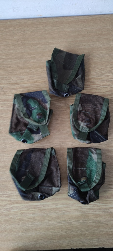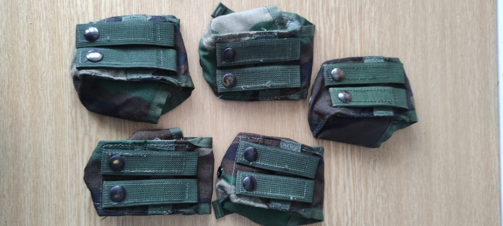 Prodám granátové sumky v maskování woodland. Sumky jsou použité, ale v pěkném stavu. Držáky drží bez problémů. Cena za komplet 900+zasilkovna Cena za kus 220+zasilkovna