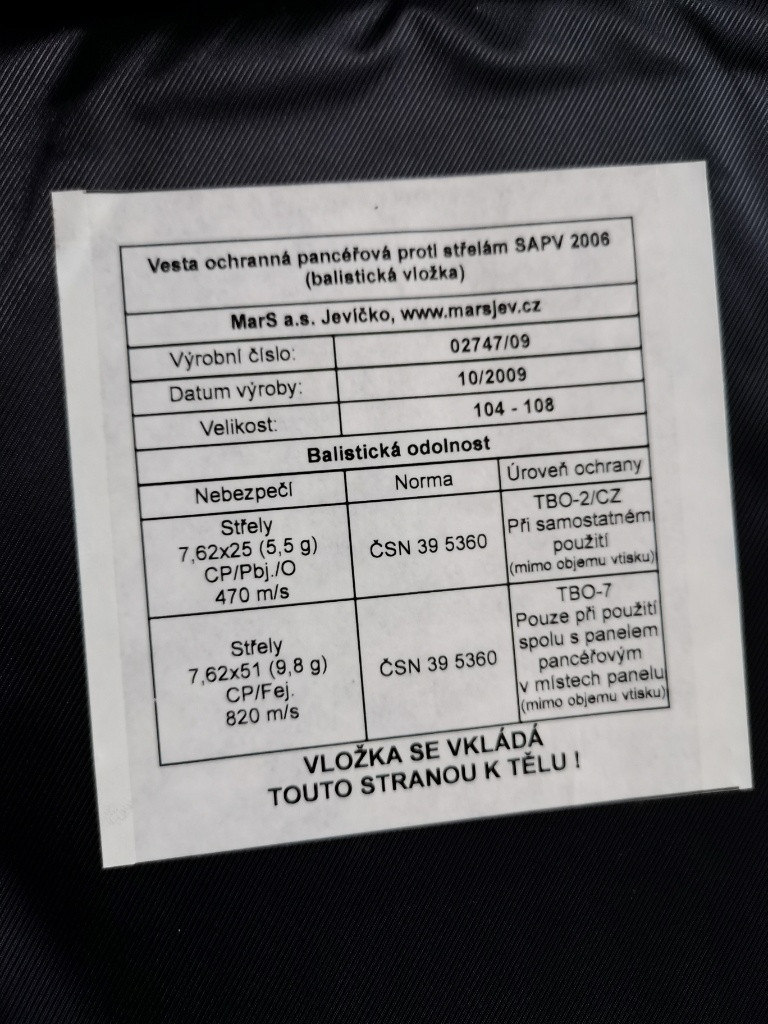 | balistické pláty III.A | Vesty | 07. 04. 2026 09:06 |