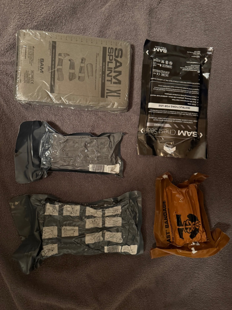 Prodám set zdravotnického vybavení co je na obrázku. Izraelák 6ka a 8ka Blast bandage. Split sam. Combo chlopeň dva kusy. Komplet tento set za 990,- Expiraci minimálně 2028. Setů mám několik. Kontakt e-mailem.