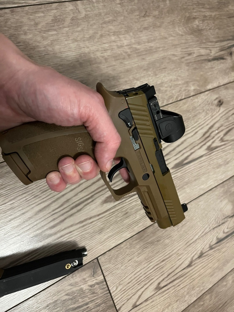 Prodám minimálně používaný licencovaný Sig m17 od VFC na zbrani je montáž na koliimator +kopie SRO od aim-O a zvýšena mířidla. Ve zbrani je zimní sada pružin , amg klapka v trysce , amg ventilky zásobníku. Ke zbrani dám jeste silnější sadu pružin a náhradní trysku +1 zásobník navíc akorát netěsní. Ventilek mam jeste do třetího