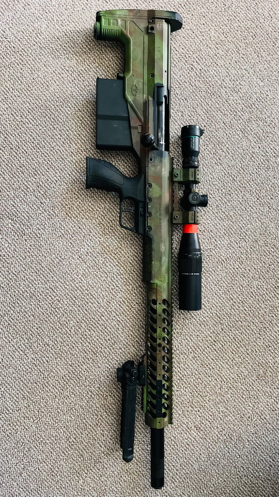 Zdravím, přemýšlím nad prodejem svého HTI. Ve zbrani je spousta upgradů. EDGI píst, custom cnc hliníková hlava válce s mousefartem a O kroužkem, dva custom trny na zakázku jeden silonový druhý ocelový, několik pružín různých výkonů (z toho 110N a 125N jsou skoro úplně nové). Ke zbrani mám dvě vnější hlavně, jedna základní se základní 730mm hlavní a FAST hop up komorou, druhá kratší karbonová custom hlaveň s TNT 550mm hlavní a MAXX komorou, závit na tlumič 16mm pravotočivý. Vnější doplňky: DTSM montáž optiky, druhá hlava natahovcí páky, popruh. Dále přidám dva další zásobníky, pár náhradních dílů. Cena dohodou, ale počítejte s tím že je to raritní zbraň kterých se vyrobilo pouze cca 1000 kusů. Optika samotná není součástí prodeje.