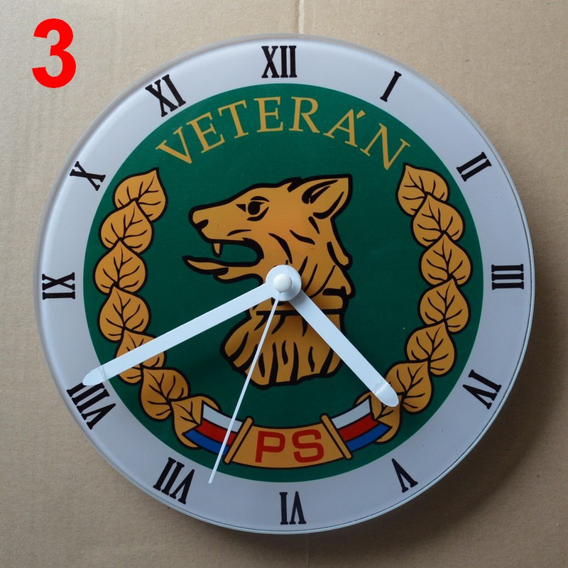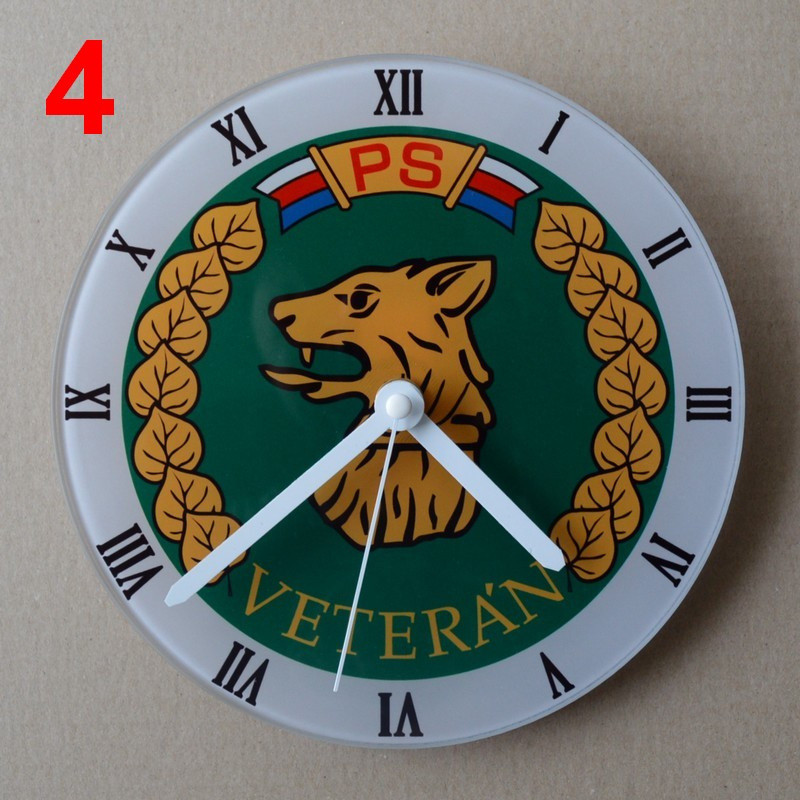 Nabízíme skleněné nástěnné hodiny s motivem Veterán Pohraniční stráže. V nabídce dvě varianty. Materiál - tvrzené sklo síly 4 mm. Průměr hodin 20 cm. Pohon hodin - elektronický strojek napájený jednou baterií AA (tužková baterie - není součástí balení). Potisk skla je realizován technologií sublimačního tisku, kdy se pod vysokou teplotou (cca 200˚C) a velkým tlakem v tepelném lisu, motiv přenáší do potiskovaného materiálu. Tato technologie se vyznačuje dokonalou ostrostí, velkou stálobarevností. Z důvodu možnosti zohýbání ručiček při přepravě nejsou ručičiky nasazeny na strojku hodin, ale přiloženy vedle v balení. Podle přiloženého návodu zvládne ručičky na hodinový strojek nasadit každý. V případě zájmu piště číslo, které je u každého typu hodin uvedené, aby bylo jasné o jaký typ hodin máte zájem. Cena za jeden kus hodin je 450,- Kč. Zaslání Zásilkovnou, Balíkovnou, poštou, pouze po platbě předem na účet. Na dobírku nezasílám. popř. po dohodě na konkrétní den a čas je možné osobní převzetí v Rudné u Prahy. Zásilkovna: 90,-Kč, Balíkovna: 80,- Kč, Pošta: 100,- Kč. Platí pouze po České republice. Na Slovensko je možné zaslat pouze Zásilkovnou na výdejní místa pouze po platbě předem na náš účet. Přepravné na Slovensko 6,00 Euro. Cena jednoho kusu hodin 19,00 Euro.