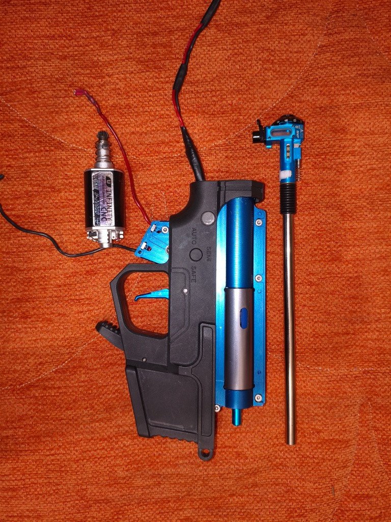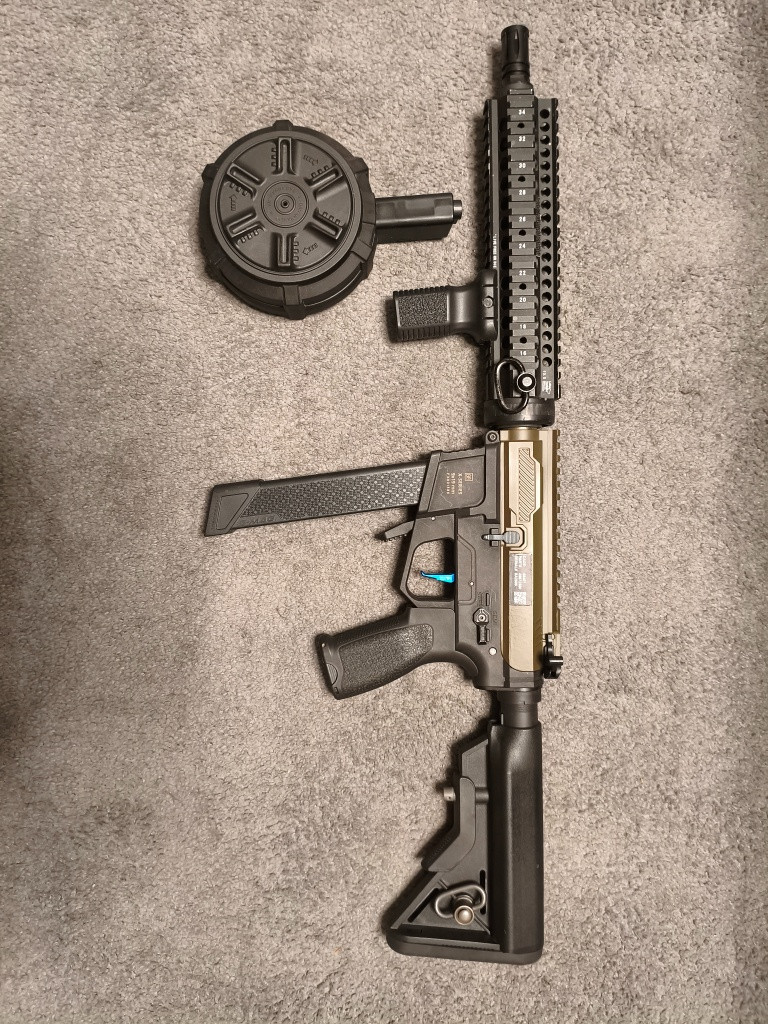 Prodám plně upravenou zbraň vhodnou na CQB, ale i na hru v lese. z původní zbraně zůstalo snad jen tělo zbraně. předpažbí 10" RIS rail Mechabox Specna arms QD CNC V2; procesorová jednotka Perun; Motor ASG ULTIMATE motor INFINITY CNC U-22000 Hop-up komora CNC M4P od MAXX; Součástí prodeje je i nasvětlovací tlumič XT301 MK2 a 2ks zasobníků. Jeden origo točný a druhý od G&G bubnový. konektor Dean-T.
