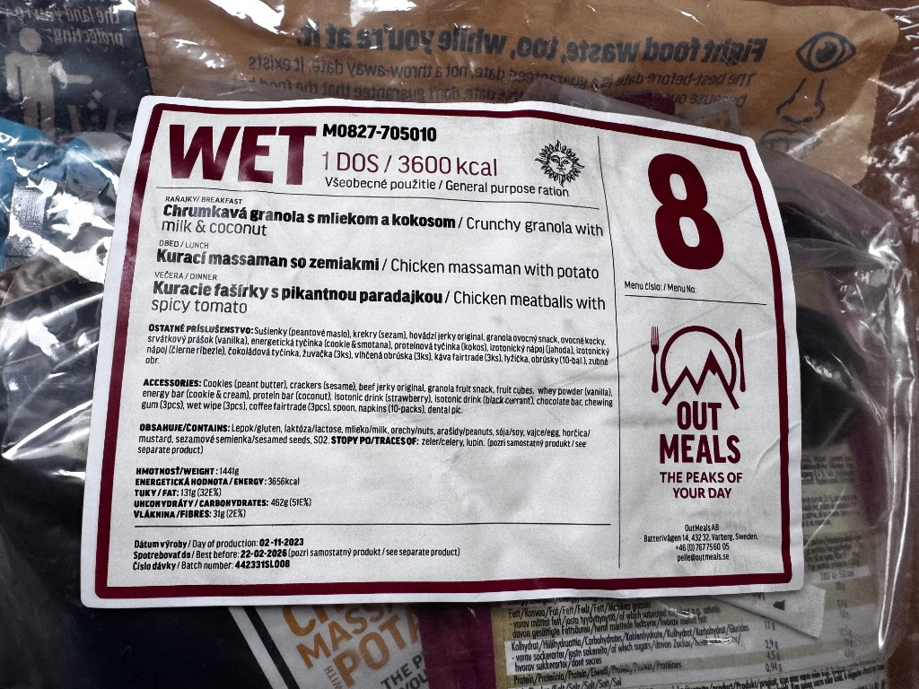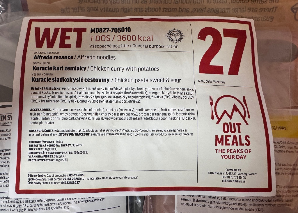 Predám Slovensko-švédske MRE je to celodenná strava: WET (3600kcal) Mám ich viac, treba volať alebo SMS. 5x Menu 6 4x Menu 27 1x Menu 8 Cena 400/ks Dohoda možná