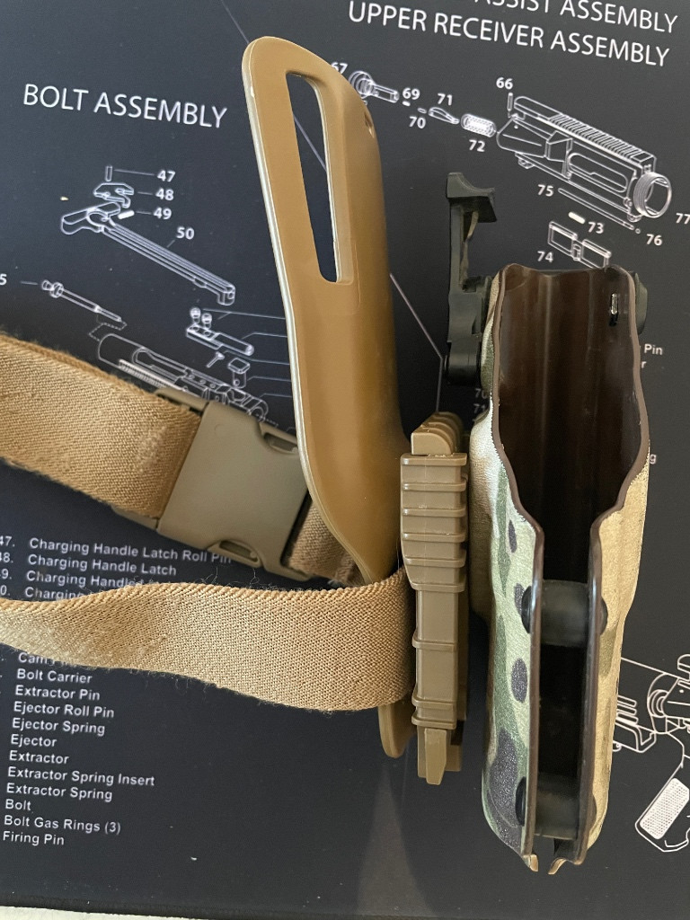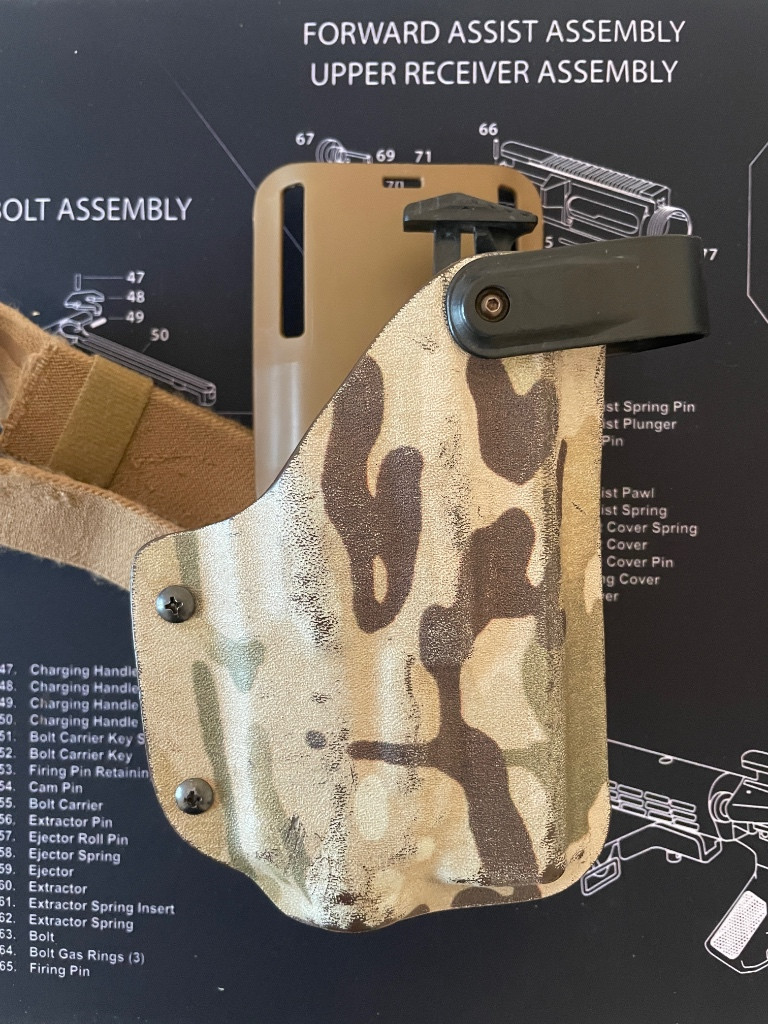 Prodám kydexové pouzdro od RH v multicamu na safariland platformě. Pouzdro je pro G17 s TLR2, ale dá se použít i s TLR1.