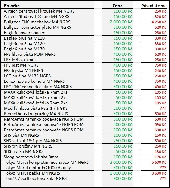 Prodám různé díly pro zbraně M4 NGRS od firmy Tokyo Marui *** Vše nové v kompletním balením nebo vyndáno z nové zbraně po jejím zakoupení *** Produkty značek Airtech / Bullgear / Eagle6 / FPS airsoft / LCT / Lonex / MAXX / Modify / Prometheus / RetroArms / SHS / Slong / Tokyo Marui / Tomáš Zbořil *** V přehledu uvedena CENA a také cena nového dílu *** Fotky na vyžádání *** Inzeráty jednotlivých produktů budu přidávat postupně *** Podívejte se i na mé další inzeráty níže *** Zásilkovna platba předem = 89 Kč / Zásilkovna dobírka = 115 Kč / Více inzerátů jedno poštovné *** Inzerát platí do smazání *** AIRSOFT