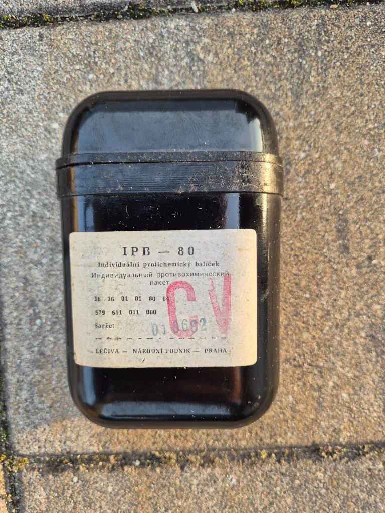 - dvě čutory - filtry k plynové masce OM-10 - kufr na noktovizor - čepice na noktovizor - IPB-80 - Individuální protichemický balíček - sumky na zásobníky samopalu vzor 61 - svítilna - chybí zelený filtr