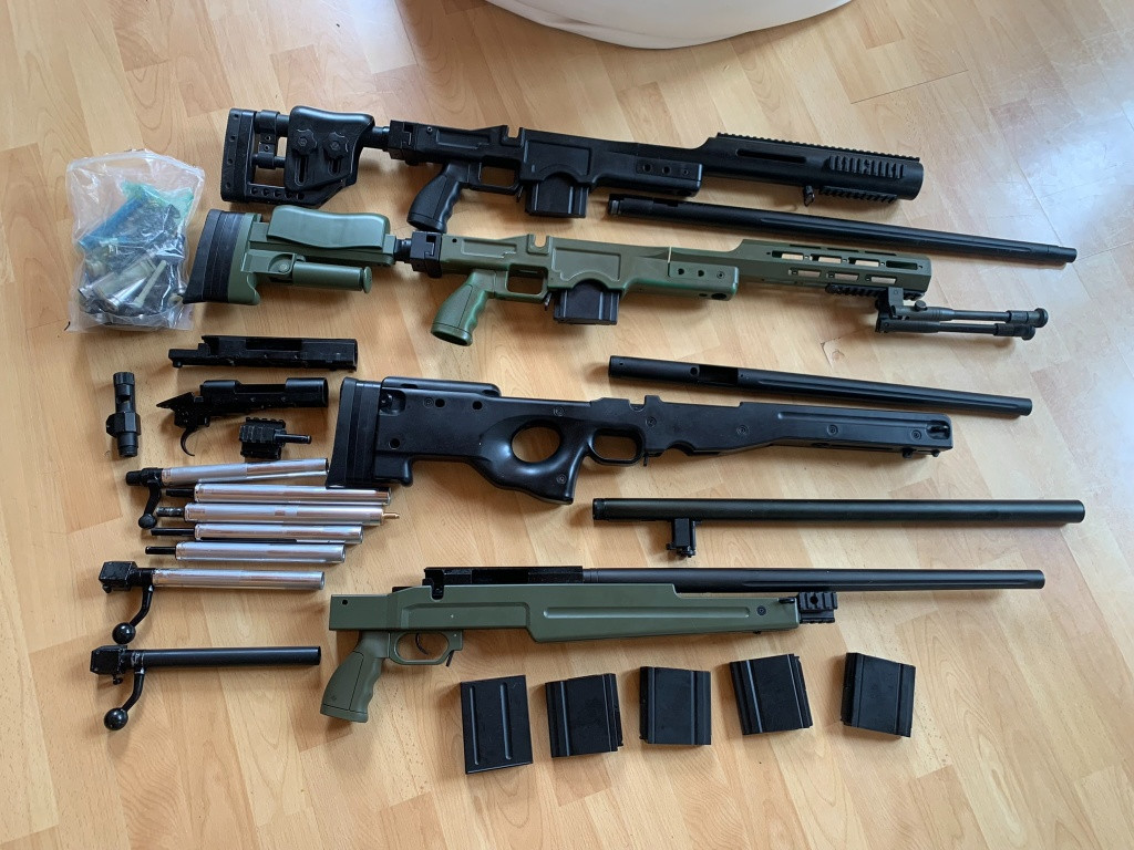 Nabízím k prodeji pažby od airsoft sniperek. Kompletně končím s airsoftem, a tak se zbavuji všeho co doma mám. Pro další info buď WhatsApp 777812209 nebo email fira.jakub@gmail.com Prodávám i další zbraně, spoustu náhradních dílů, gearu a věcí, které jsou k airsoftu potřeba. Na vyžádání pošlu více fotek.