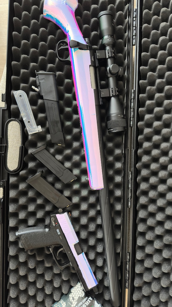 Ssg10 včetně optiky, 2x zásobník, kuličky 0,45g a 0,50g To co je na fotkách reálně vystřílela, 2,8J se 150 pružinou přidám i původní 220 Ssx23 2x plynový zásobník + hpa adaptér a adaptér na tlumič vystřeleno asi 100x To celé v boxu Na vše záruka Pc: 20000 Má představa o ceně 16500,- Váha kuliček na fotkách dokazuje minimální využití Důvod prodeje vážně to nevyužiji není to můj typ hraní Zbraně jsou v ochranné folii další majitel ji jen sloupne a vše bude původní Při rychlém jednání jsem ochotný se domluvit na snížení ceny