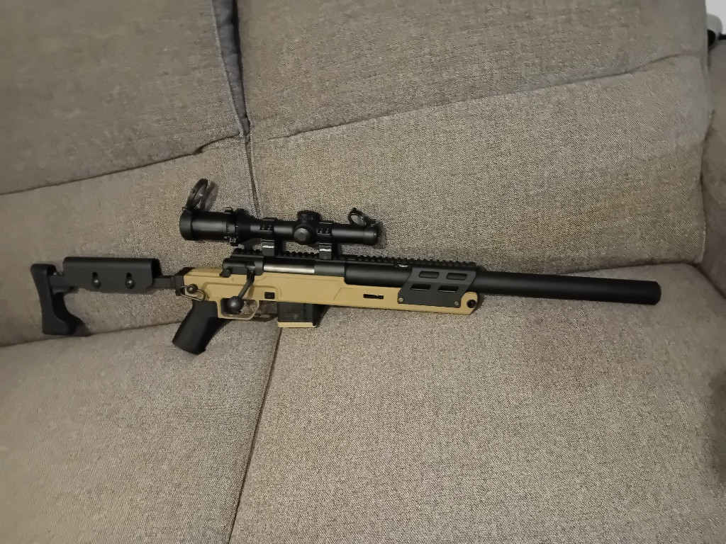 Manuálna sniperka spr300. Hraná na 3 akciách, top stav. Na pieste je hlava vlastnej výroby s o krúžkom a vzduchovou brzdou s o krúžkom. V komore je gumka od silverback a plochý prítlak archwick. K puške sú 3 zásobníky, do originálnej zátky hlavne je dorobená redukcia na 14mm tlmič + na puške je momentálne 3d tlačená zátka bez závitu s menšou dierou pre lepšiu efektivitu integrovaného tlmiča. Puškohľad vector optics continental 1-8x nieje v cene, je možné ho pridať po dohode a adekvátnom doplatku. K puške je aj original krabica. Posielam aj do česka zasilkovnou/ packetou, píšte prosím sms.+421949717282