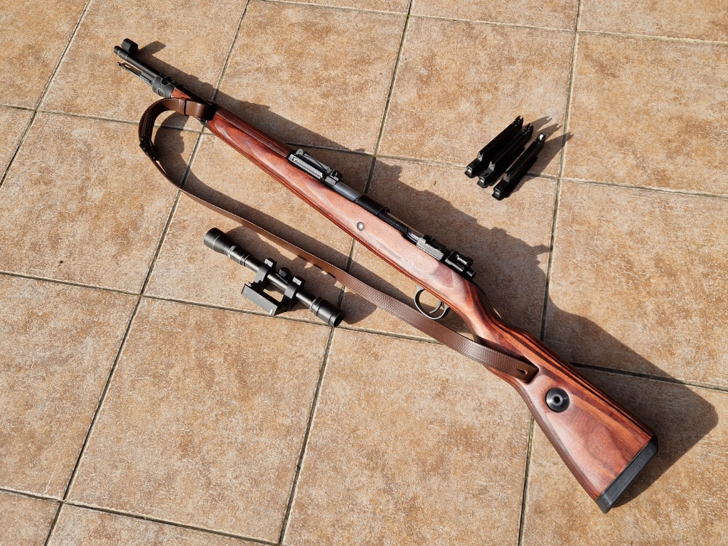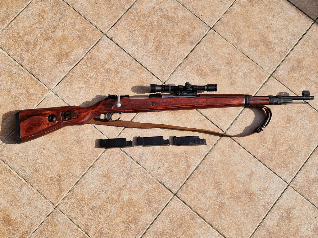 Prodám krásnou KAR98K. Základ byl od výrobce Snow Wolf, uvnitř je upgrade set od AirsoftPro (odkaz níže). Zbraň dostala novou krásnou pažbu z pravého dřevo od výrobce TNT (odkaz níže, pořizovací cena 200 dolarů). Na kovových částech byla provedena patina. Ke zbrani přidám puškohled od G&G, 3 zásobníky a kožený popruh. Preferuji osobní předání na Písecku, po dohodě mohu zbraň převézt do Prahy 17. Upgrade - https://airsoftpro.cz/cz/dily-zbrani-upgrade/dily-pro- odstrelovaci-pusky/pro-sw-kar98k/upgrade-set-pro-pusky- snow-wolf-kar98k-detail Pažba - https://ast-gun.airsofttaiwan.com/index.php? route=product/product&category_id=97&manufacturer_id=997 &product_id=2708 Puškohled - https://airsoftpro.cz/cz/doplnky-ke-zbranim- popruhy/kolimatory-puskohledy/puskohledy/ostatni- puskohledy/puskohled-pro-g980-kar98k-1-5x-zvetseni-detail SW, Snow Wolf, Kar 98, Kar98, Kar98k