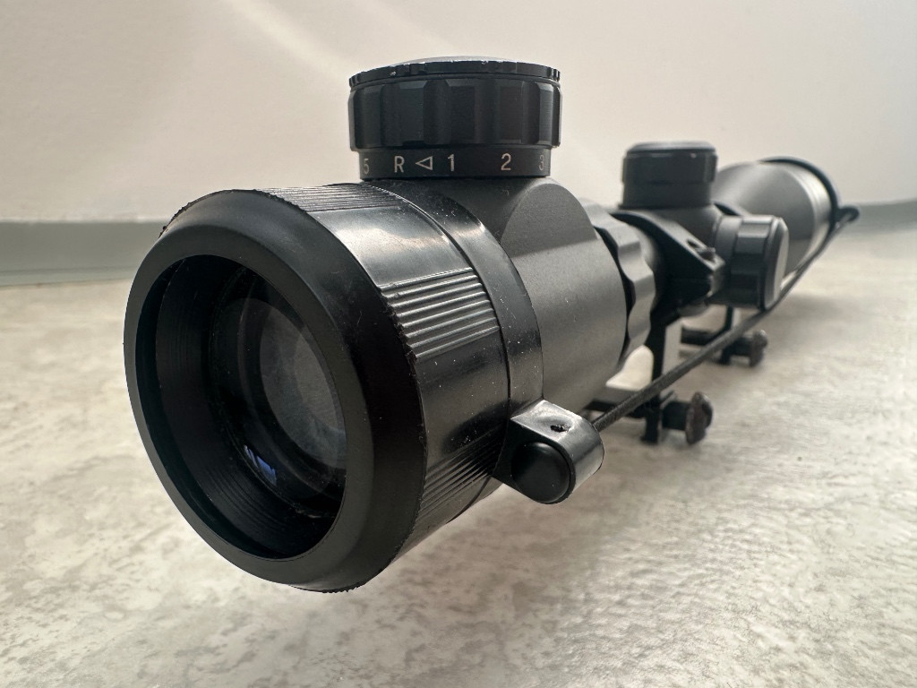 Prodám airsoftový poškohled 3-9*50E. S podsvícením a sluneční clonou. Podsvícení zelený a červený kříž. Kříž lze regulovat horizontálně a vertikálně. Lze připevnit na klasické RIS LIŠTY Stav- používaný ale jako nový